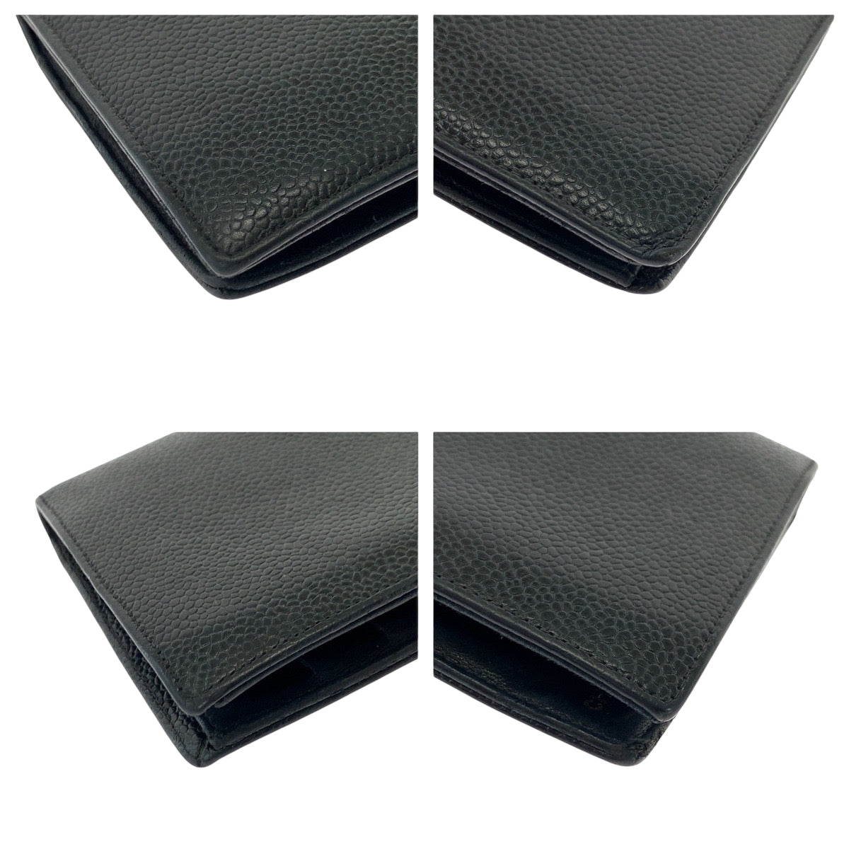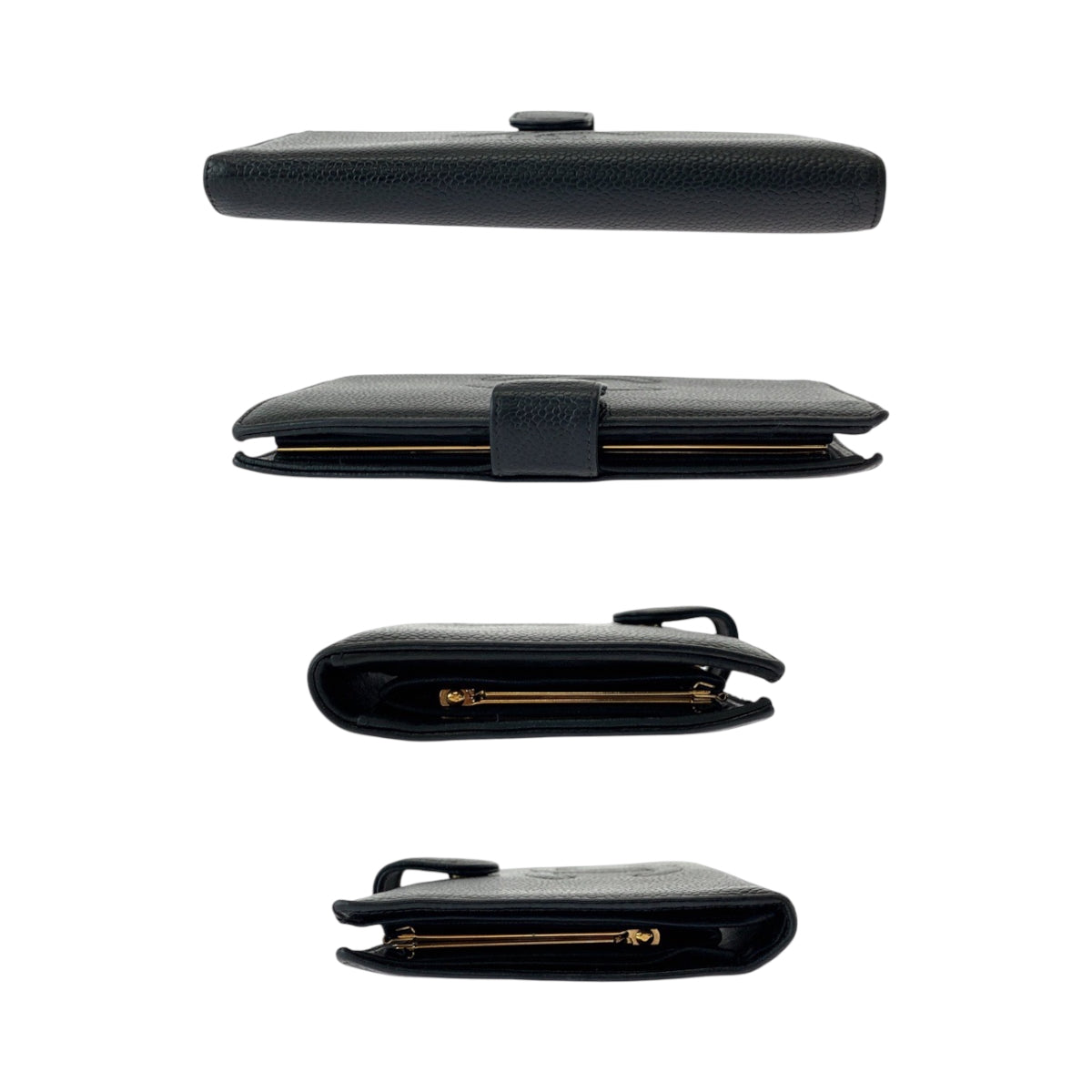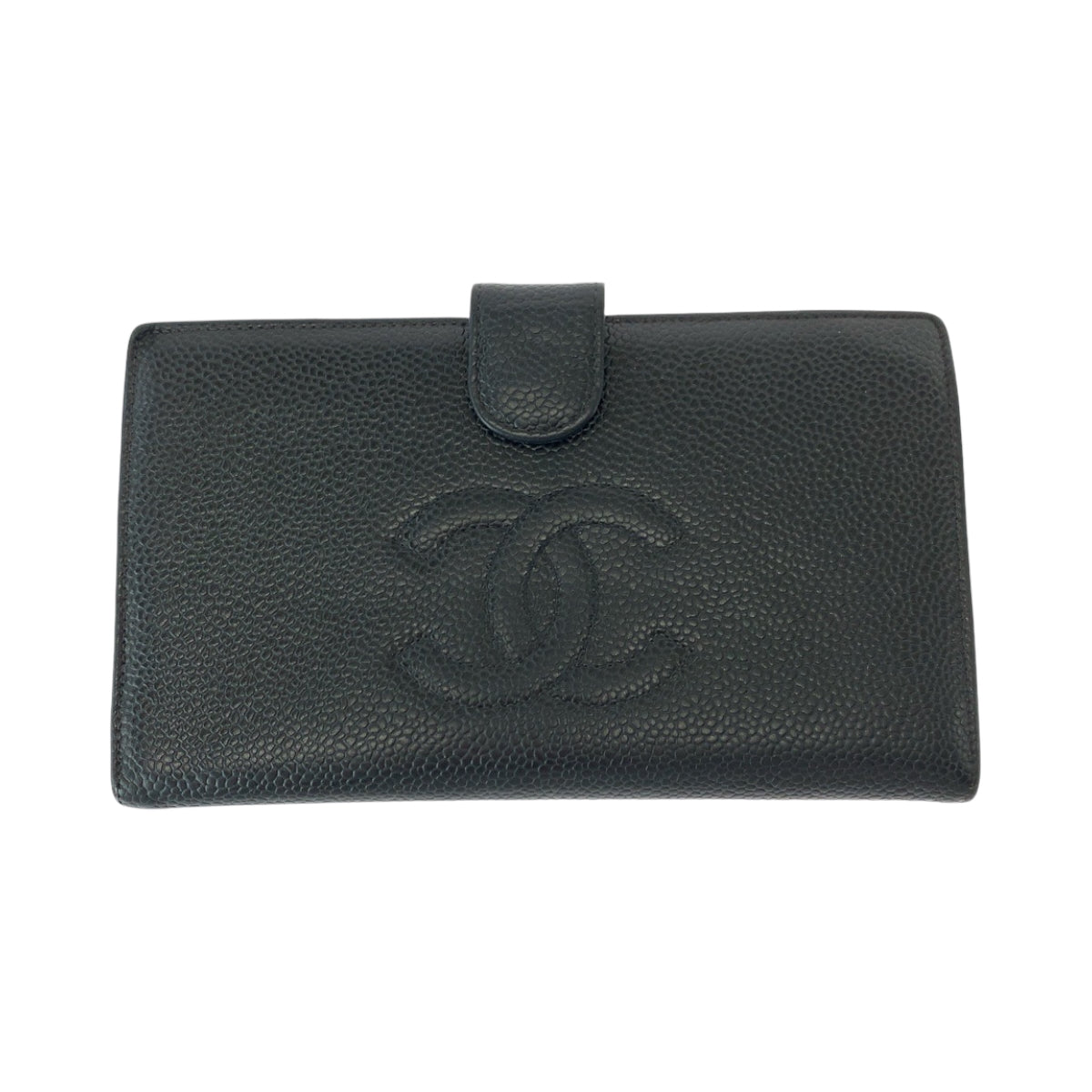 CHANEL Long Wallet Purse Caviar skin Black GoldMetal Long Wallet Purse COCO Mark Women Used Authentic
