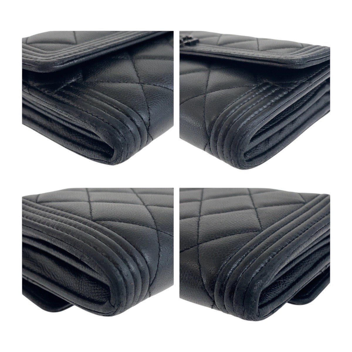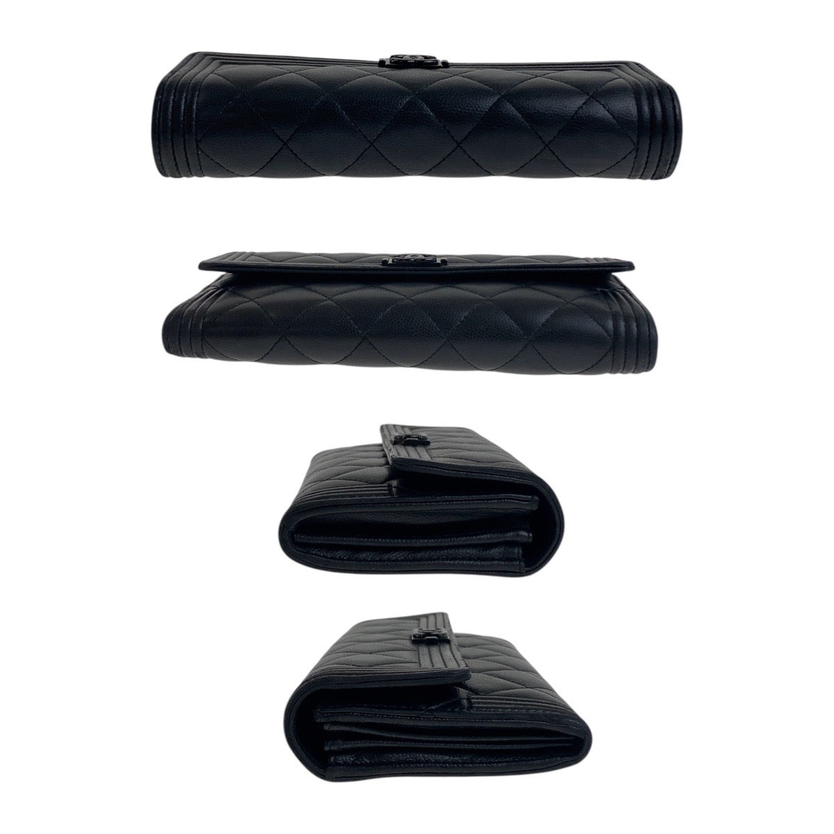 CHANEL Long Wallet Purse Caviar skin Black SilverMetal Boy chanel COCO Mark