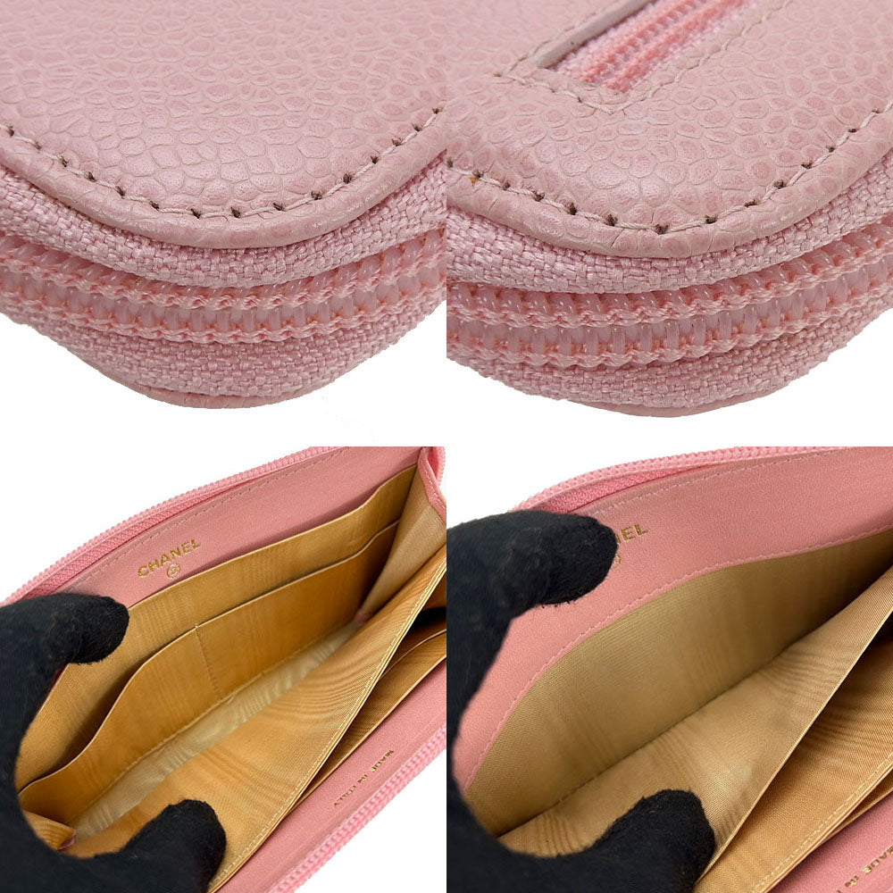 CHANEL Long Wallet Purse Caviar skin pink Women Used Authentic