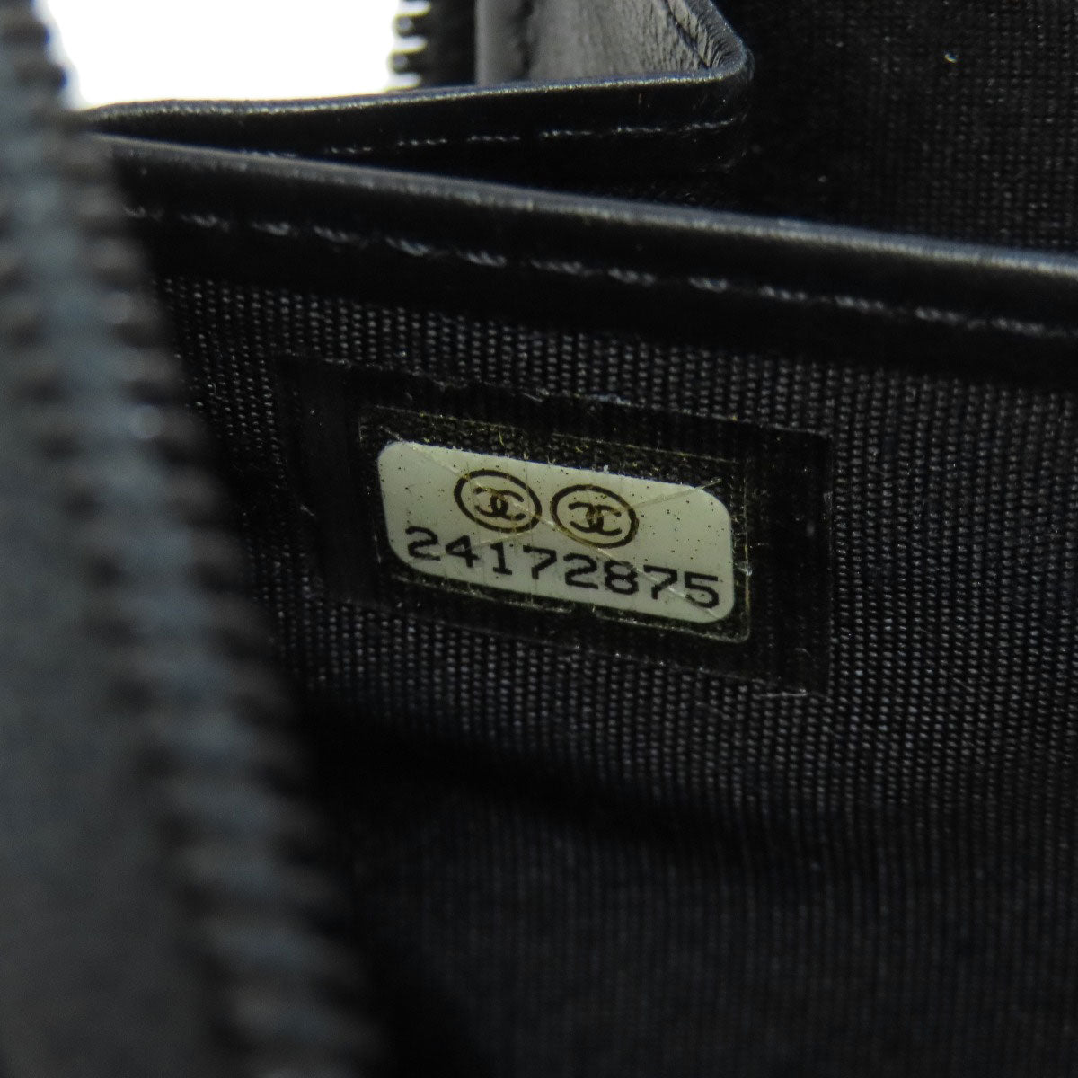 CHANEL Long Wallet Purse Grained Calfskin Skin black Zip Around COCO Mark SilverMetal