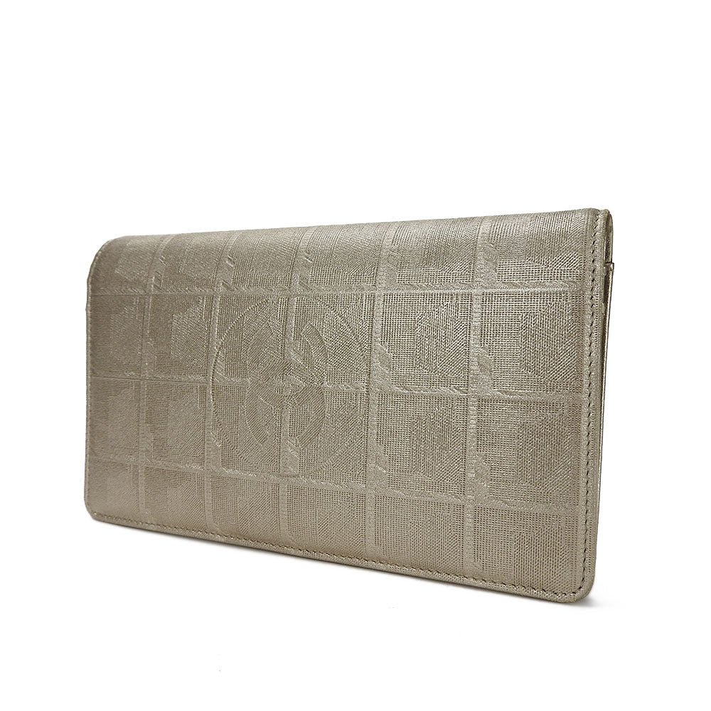 CHANEL Long Wallet Purse Jacquard nylon, leather gold New travel line Women Used Authentic