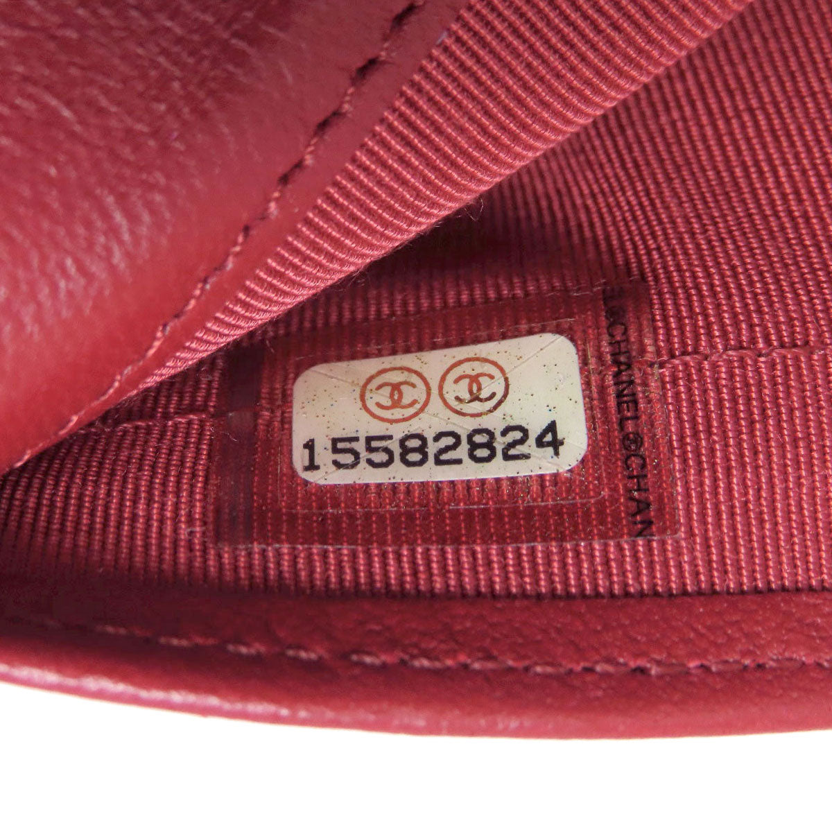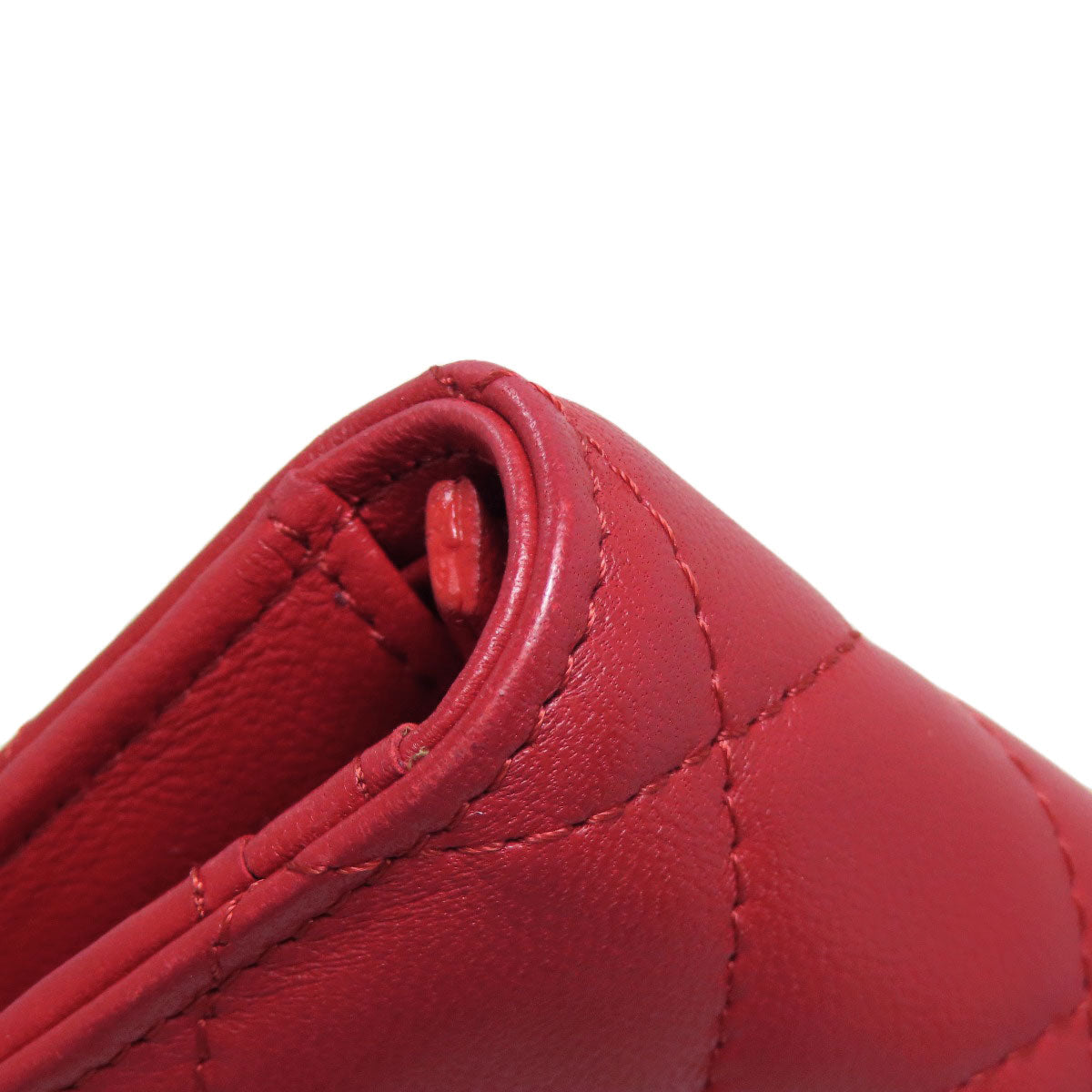 CHANEL Long Wallet Purse lambskin Red Matelasse COCO Mark SilverMetal