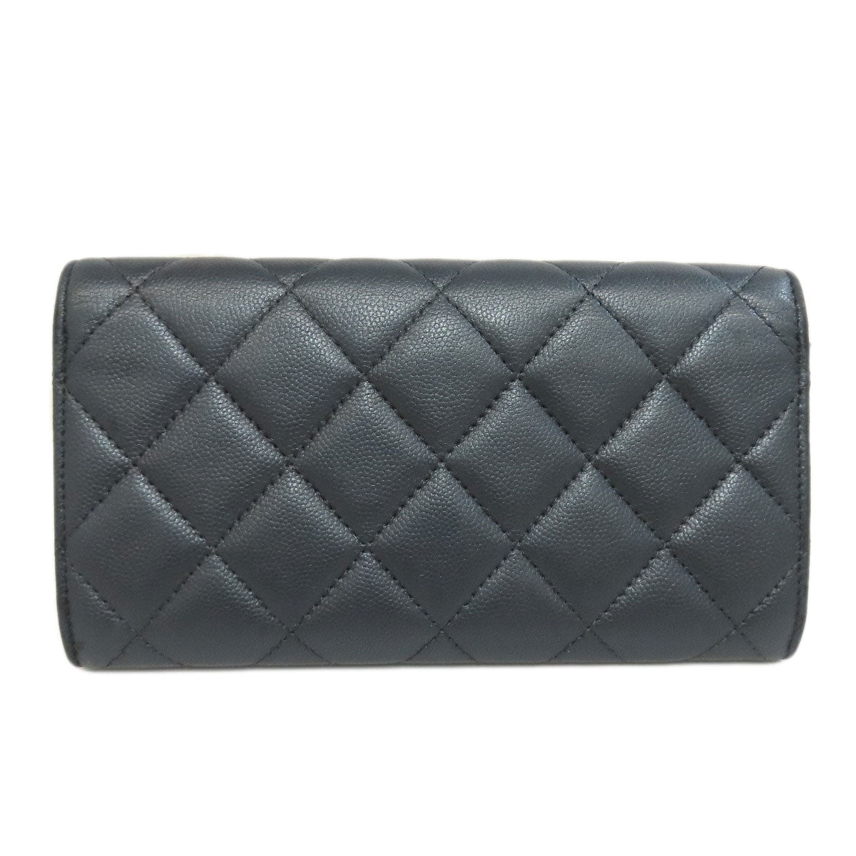 CHANEL Long Wallet Purse Soft Grained Calfskin gray COCO Mark Women Used Authentic