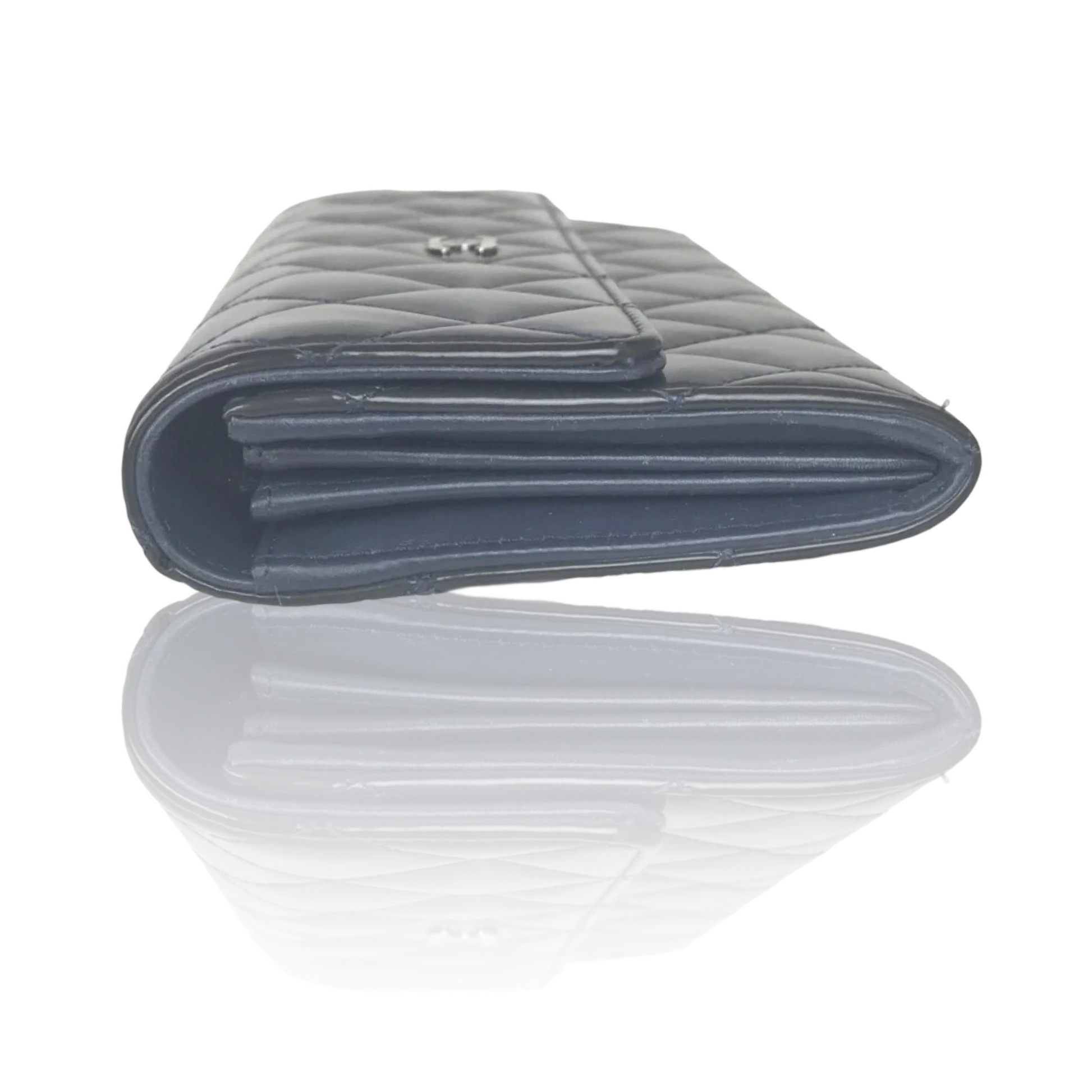 Introducing the luxurious CHANEL Patent Matelasse Quilted Wallet. Made with premium patent leather, this wallet exudes sophistication and elegance. With its trifold design, it offers ample space for all your essentials. Elevate your style with this must-have accessory, a perfect blend of art and fashion.