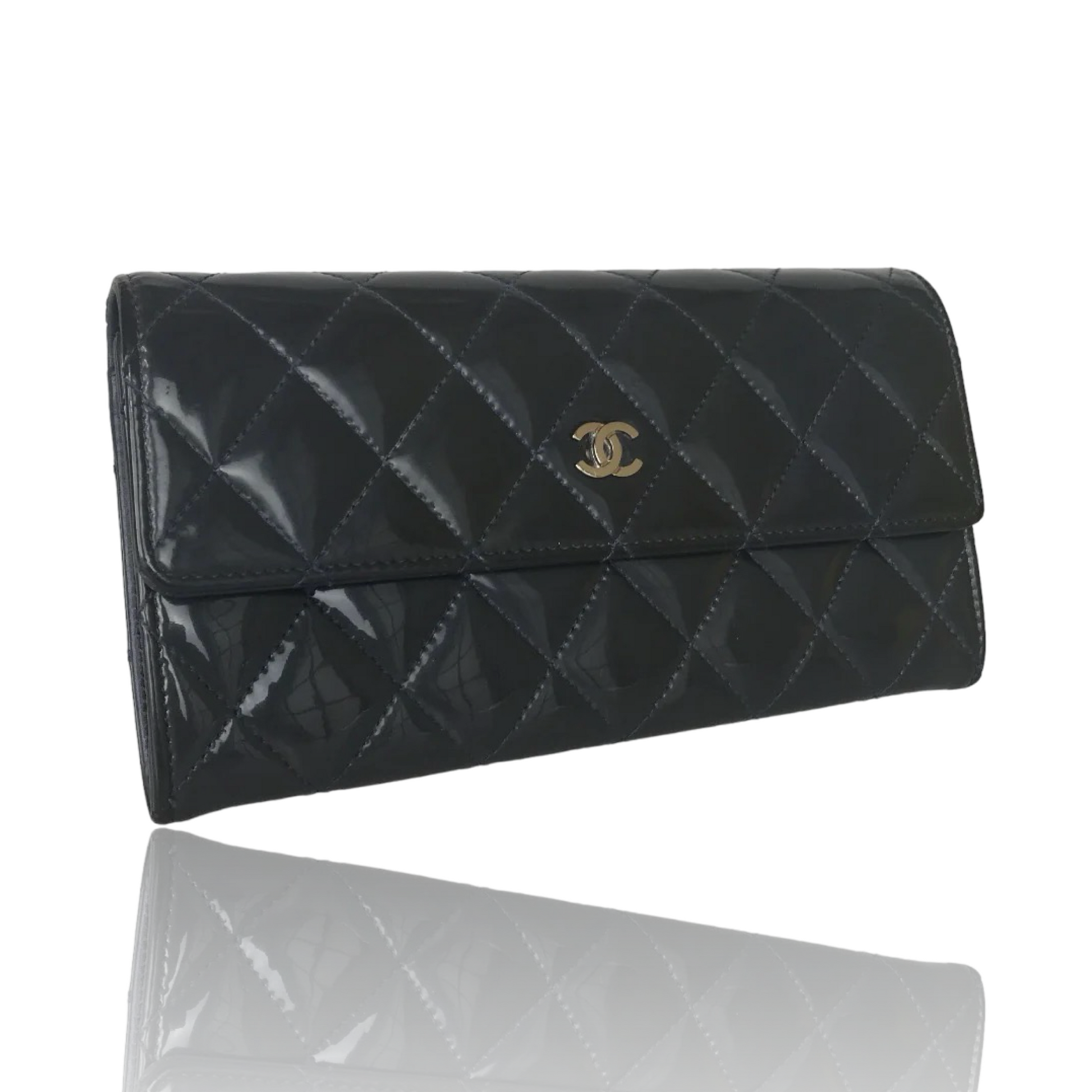 CHANEL PATENT MATELASSE QUILTED WALLET