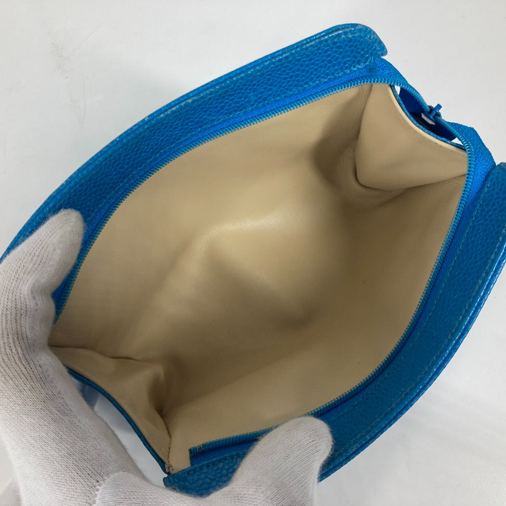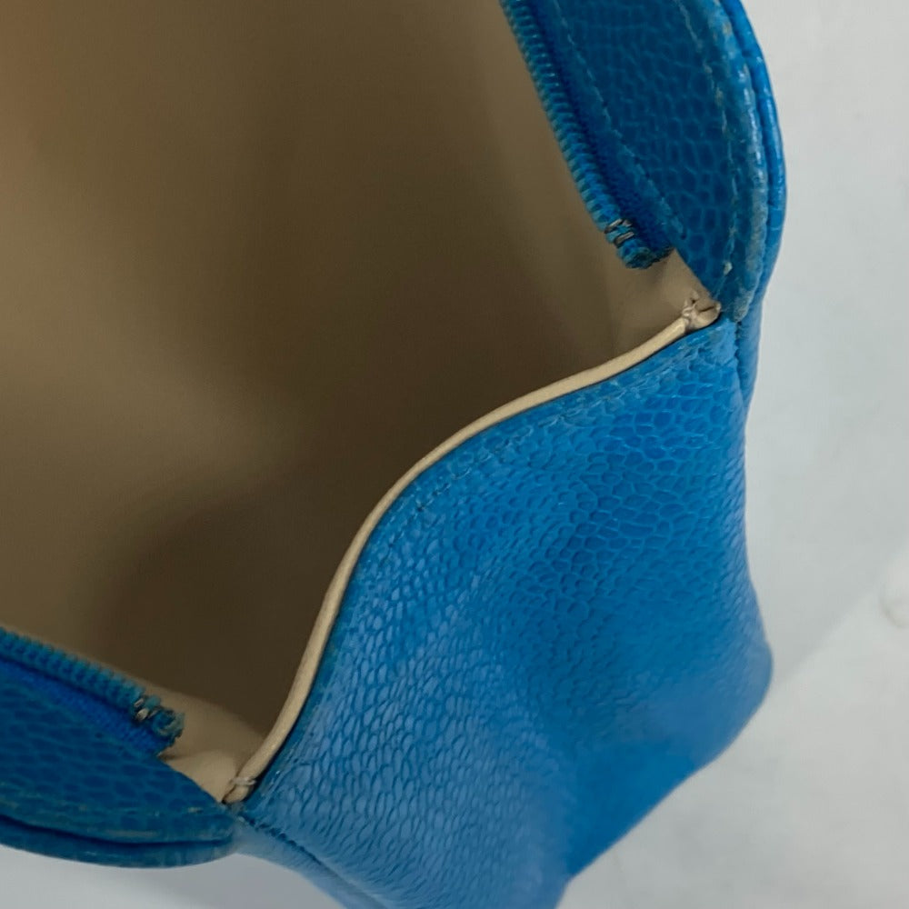 CHANEL Pouch Caviar skin blue Multi pouch CC COCO Mark Women Used Authentic