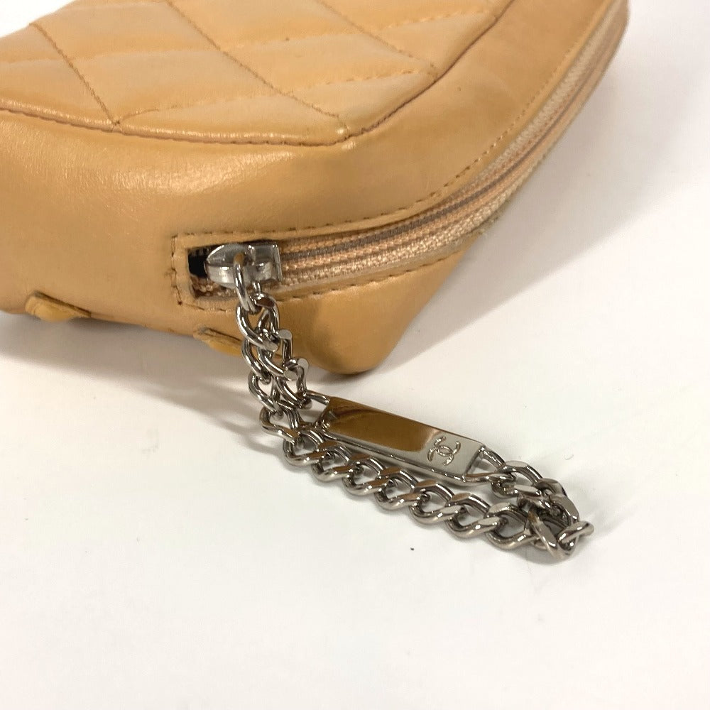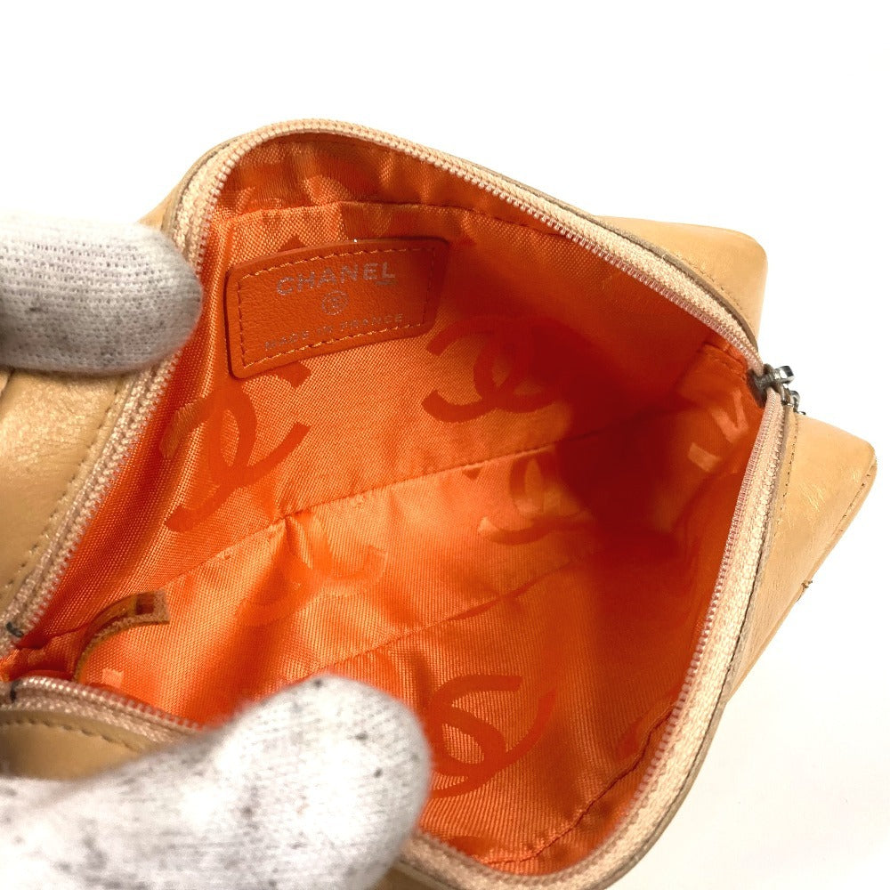 CHANEL Pouch leather beige Cambon line CC COCO Mark Women Used Authentic