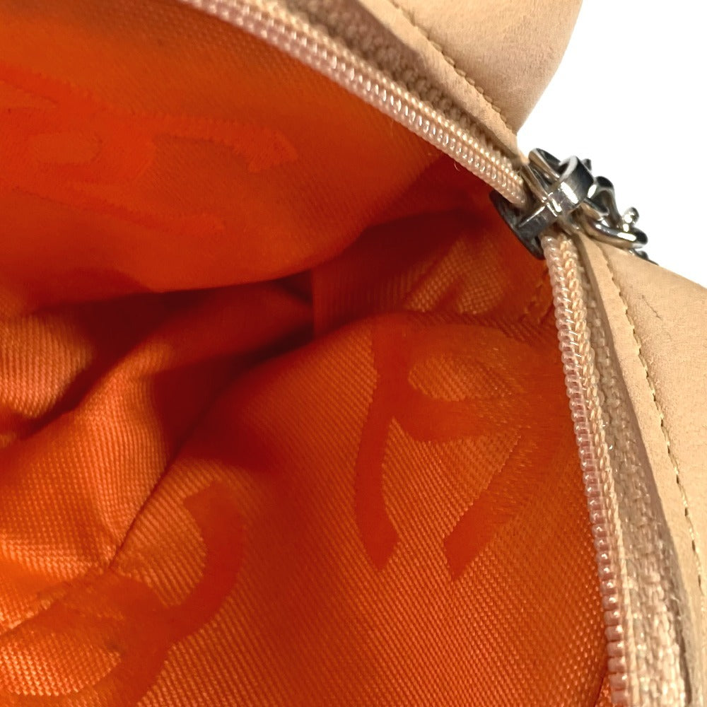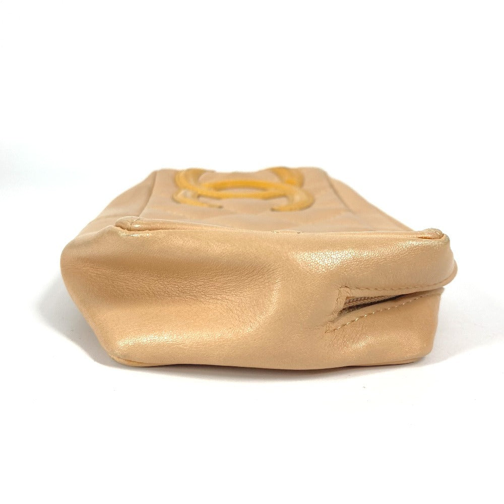 CHANEL Pouch leather beige Cambon line CC COCO Mark logo Women Used Authentic