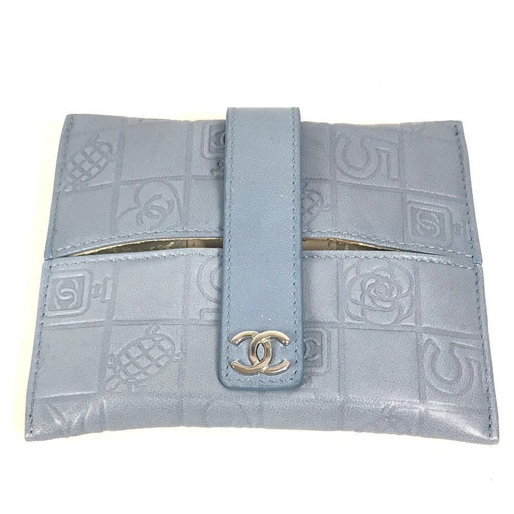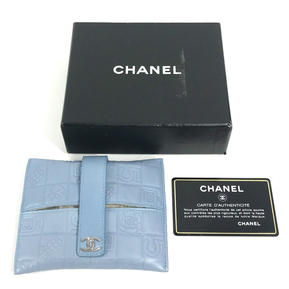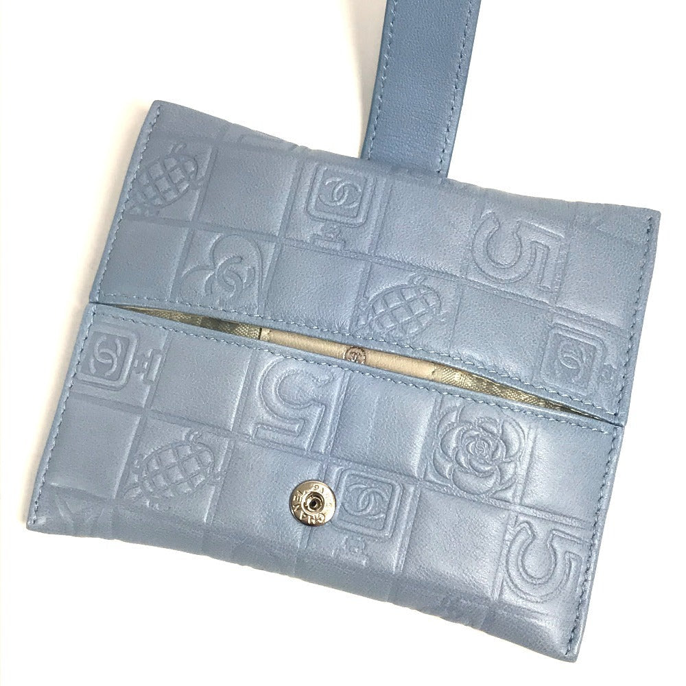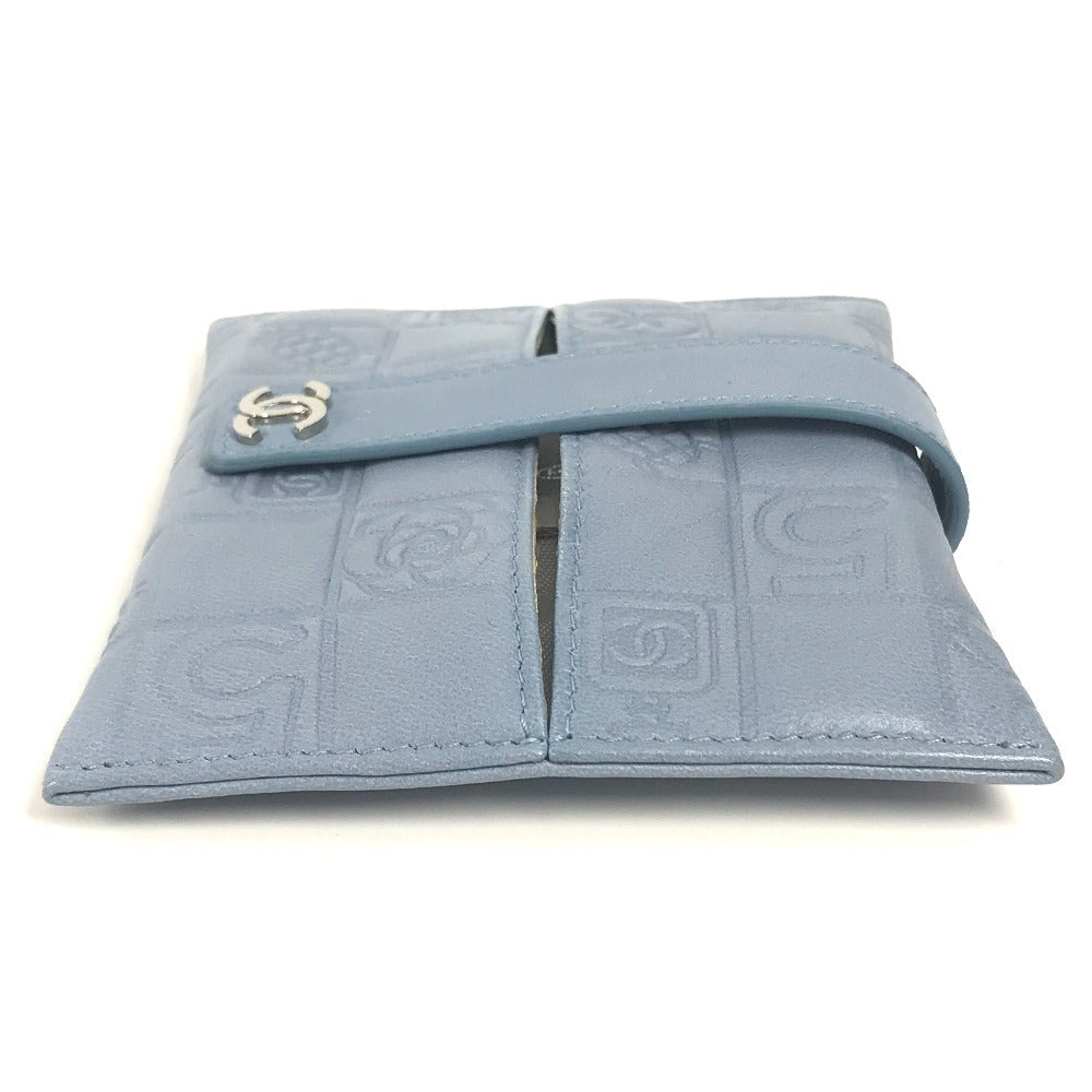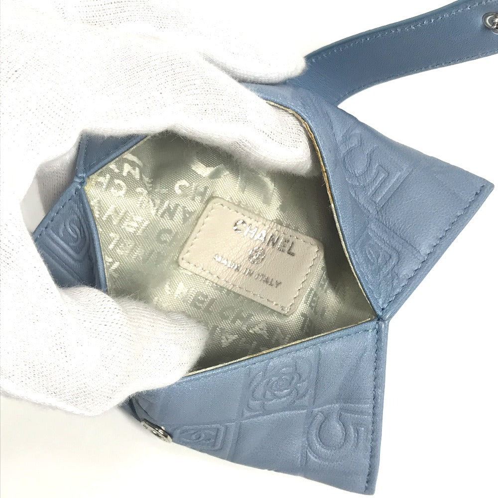 CHANEL Pouch leather blue CC Camellia Icon Pocket Tissue Cover