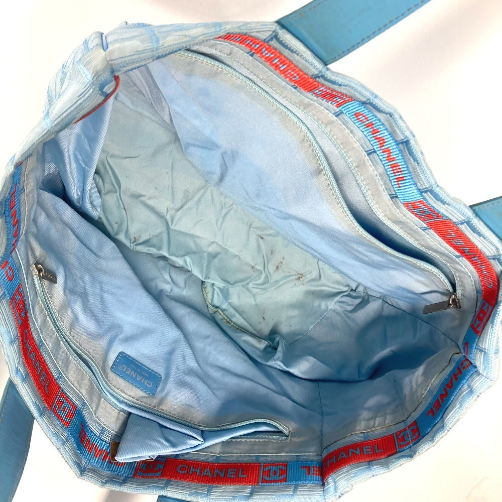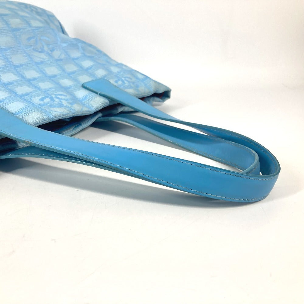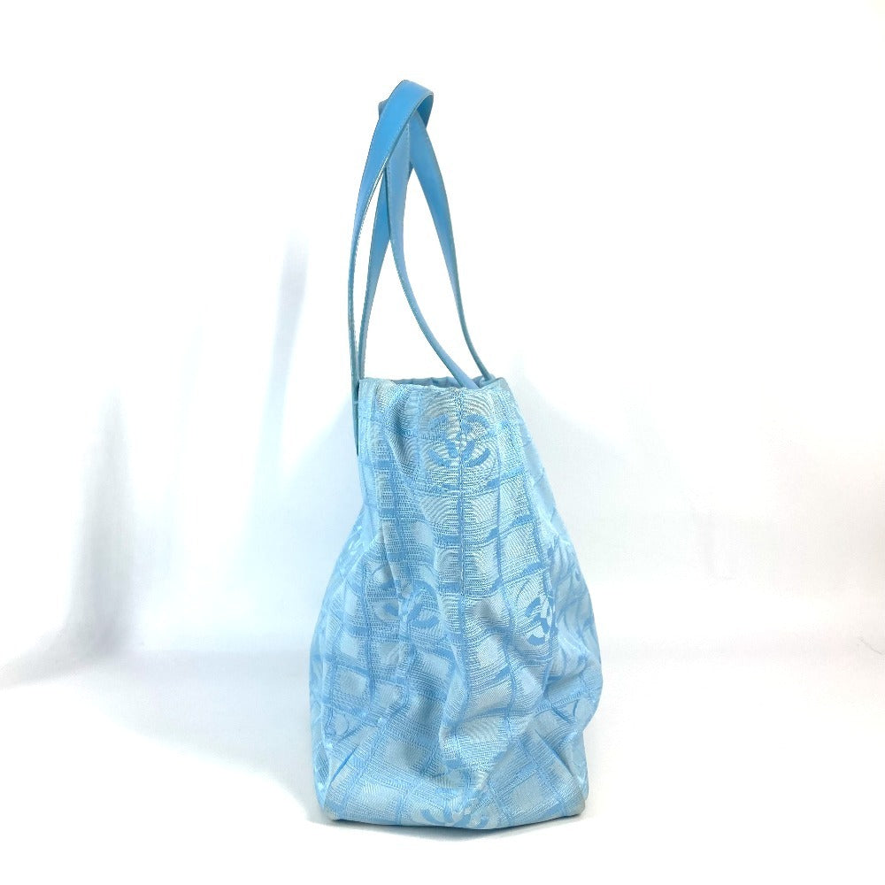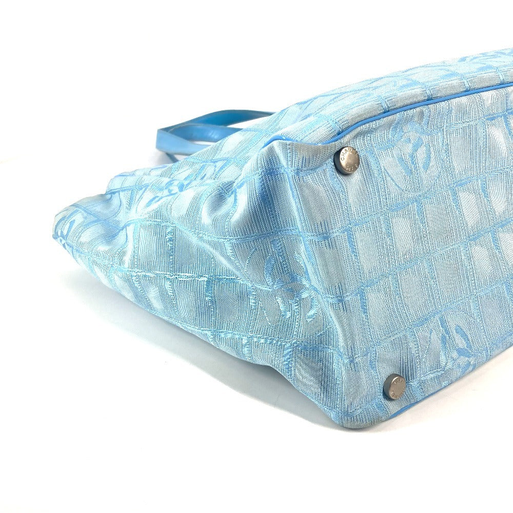 CHANEL Shoulder Bag A15991 Nylon jacquard / leather blue New Travel Line MM