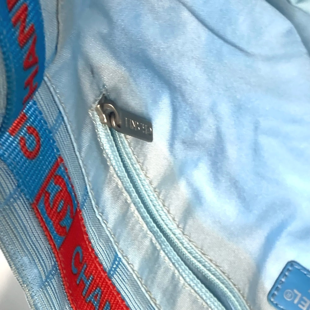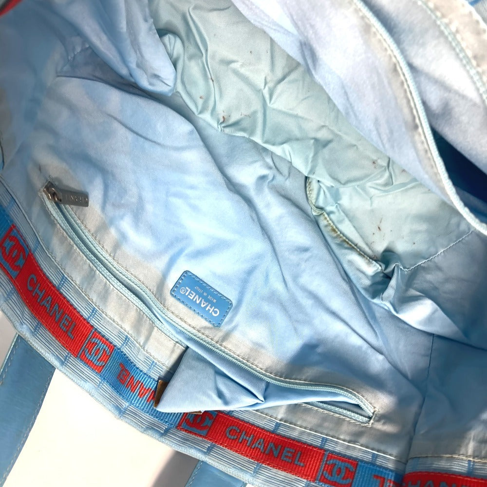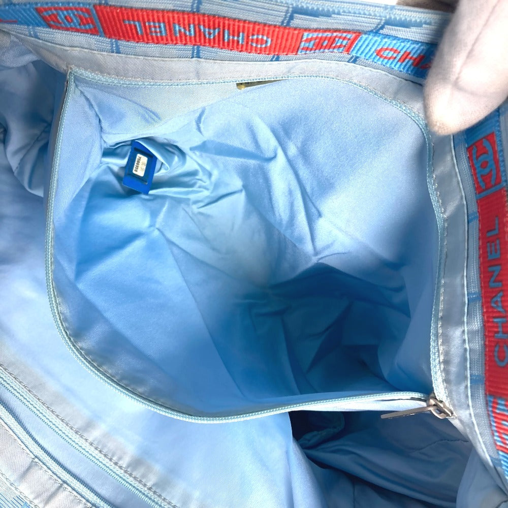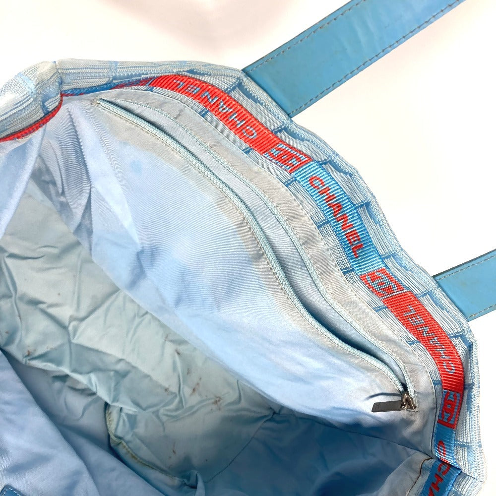 CHANEL Shoulder Bag A15991 Nylon jacquard / leather blue New Travel Line MM