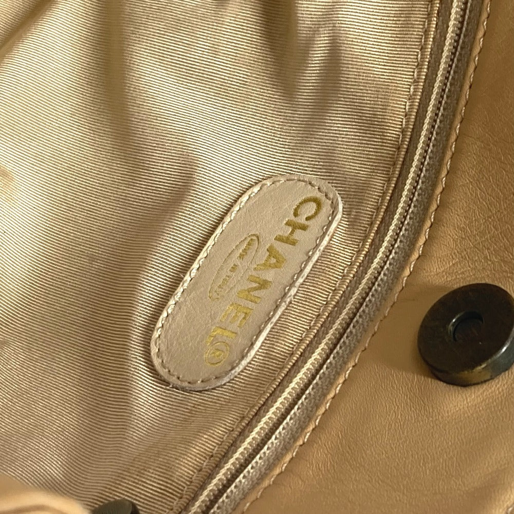 CHANEL Shoulder Bag leather beige vintage CC COCO Mark Fringe Tassel