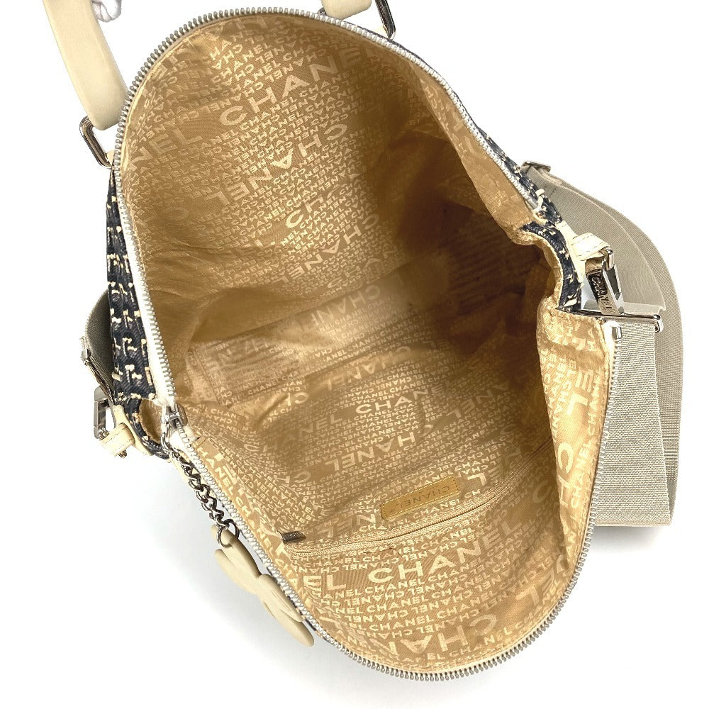 CHANEL Shoulder Bag Leather / canvas black Clover logo