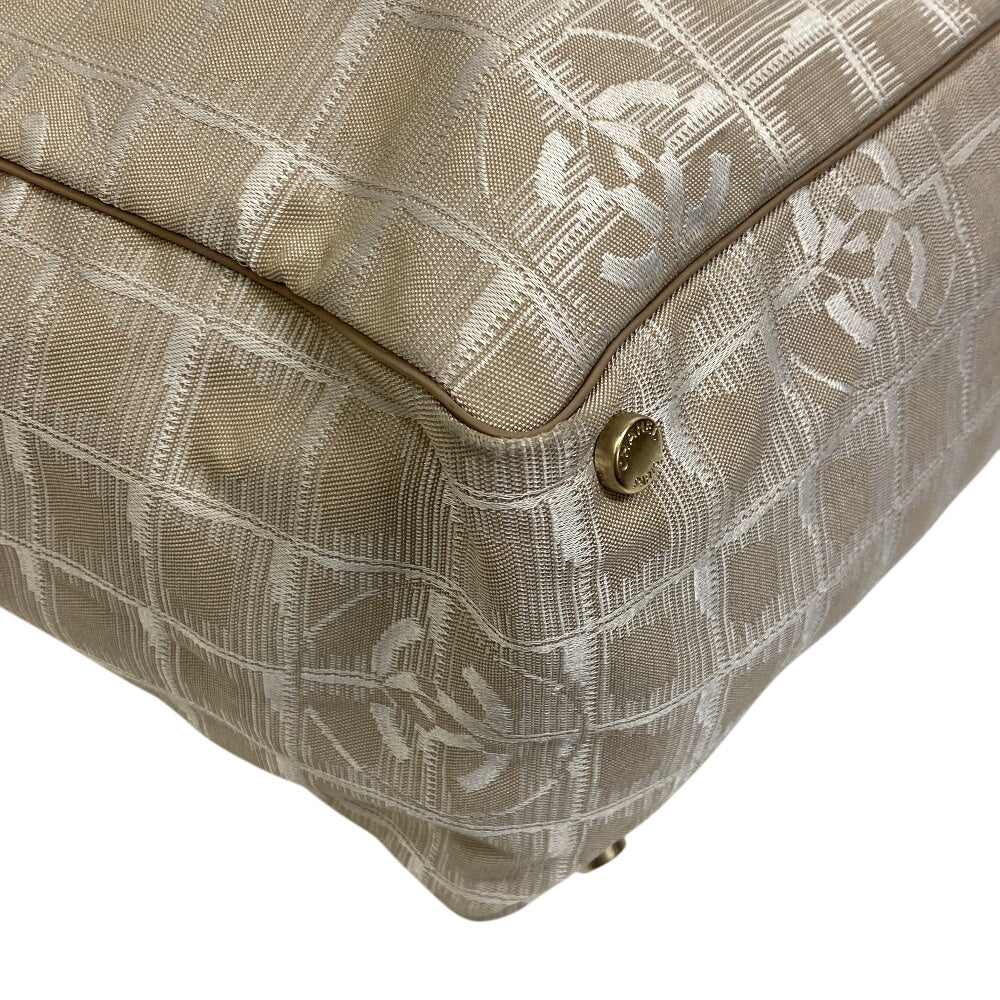 CHANEL Tote Bag Canvas, Leather beige Shoulder handbag New Travel Line MM Women Used Authentic