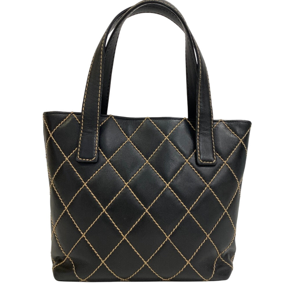 CHANEL Tote Bag Kid Calfskin Leather black Wild stitch