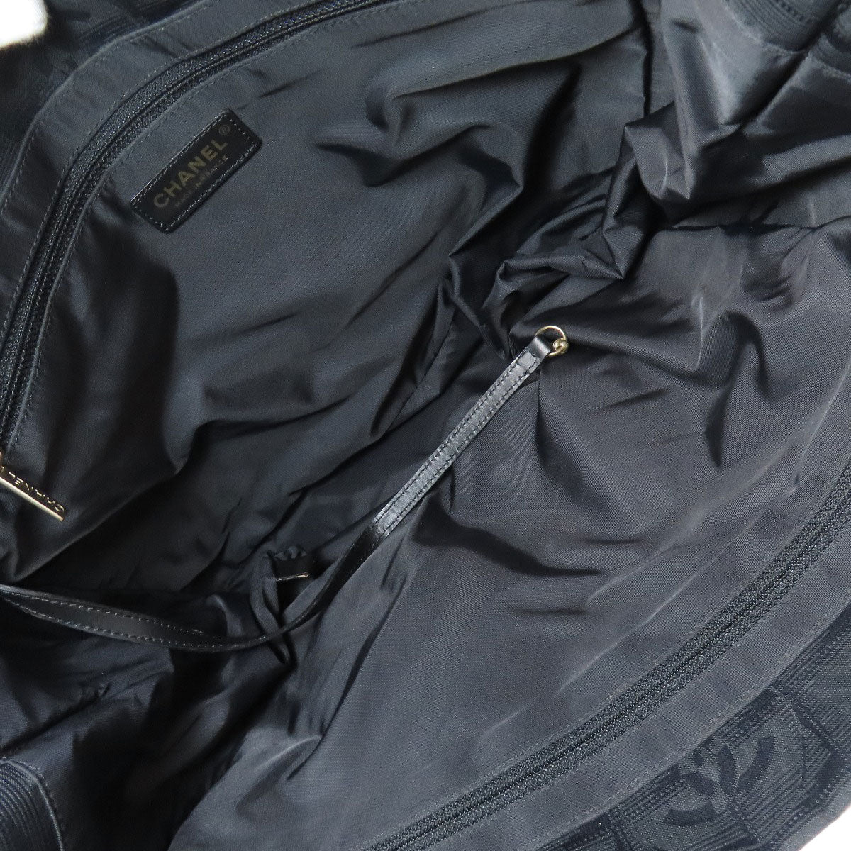 CHANEL Tote Bag Nylon jacquard black New Travel Line MM Women Used Authentic