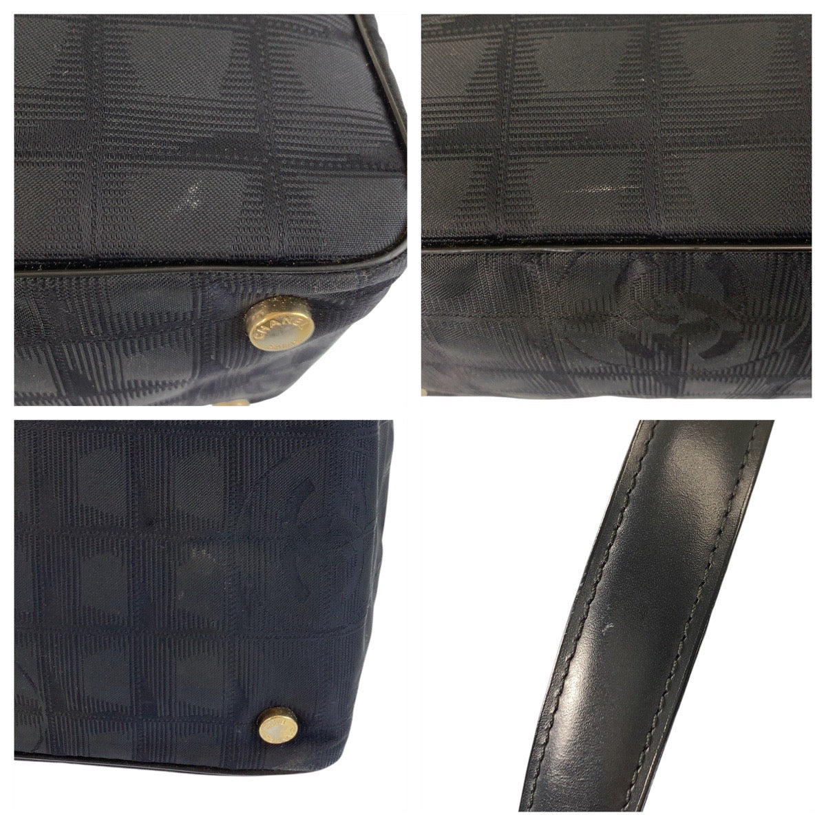 CHANEL Tote Bag Nylon, Leather Black GoldMetal Tote Bag Shoulder Bag New travel line Women Used Authentic