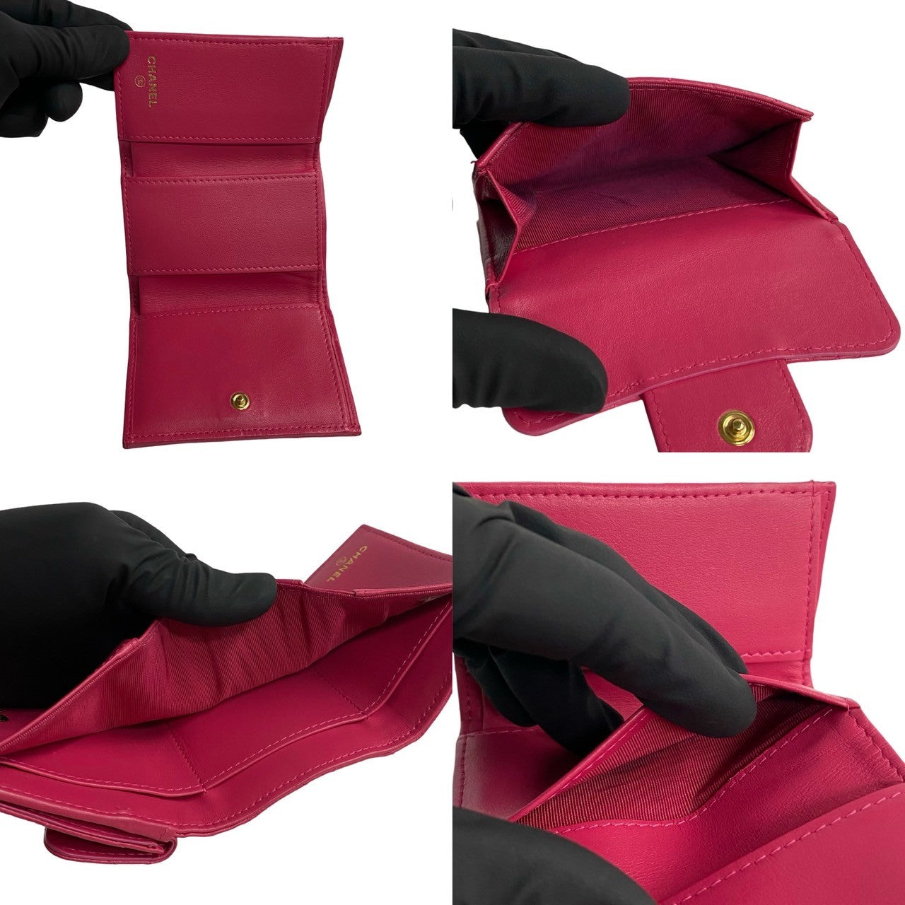 CHANEL Tri-fold wallet A70325 lambskin pink Small flap wallet 2.55 Women Used Authentic