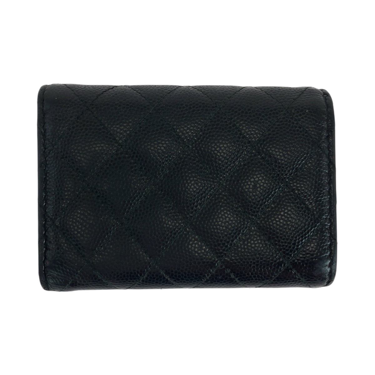 CHANEL Tri-fold wallet Caviar skin Black GoldMetal Folding wallet Compact wallet Boy Chanel Small Flap COCO Mark Women Used Authentic