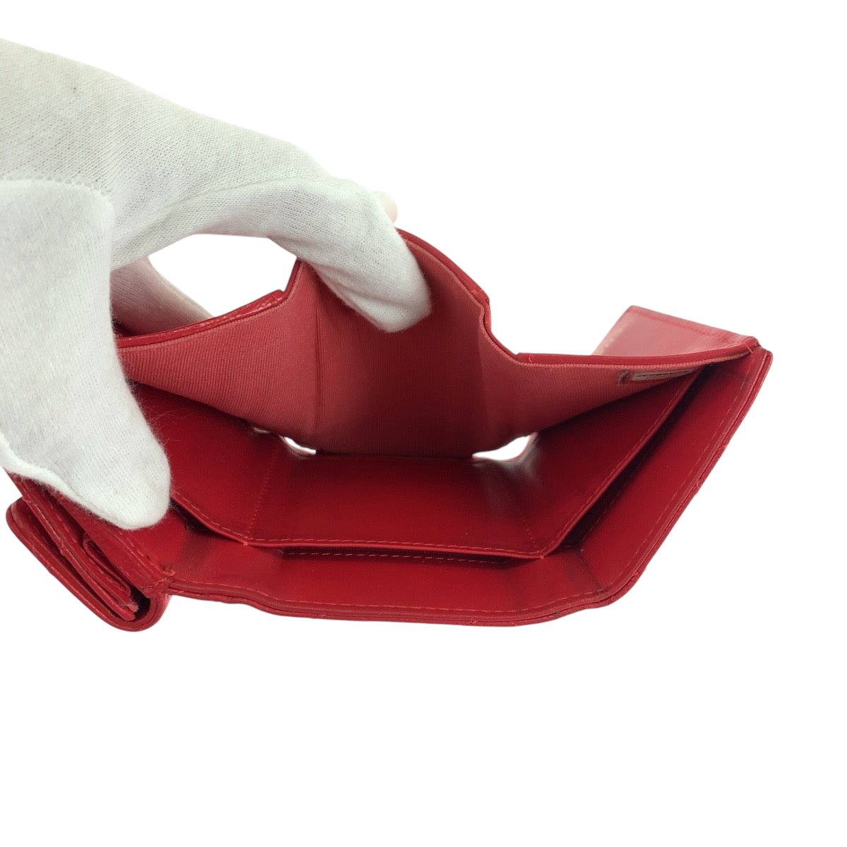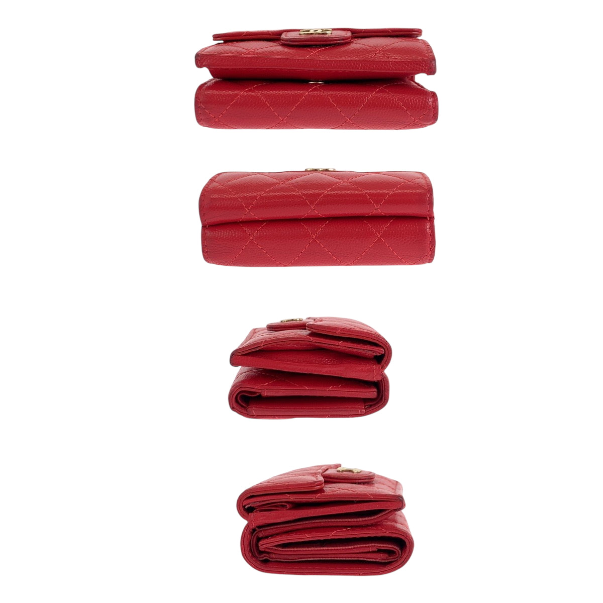 CHANEL Tri-fold wallet Caviar skin Red Gold Metal Folding wallet Compact wallet Matelasse small flap COCO Mark Women Used Authentic