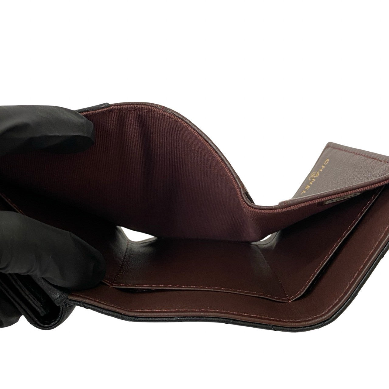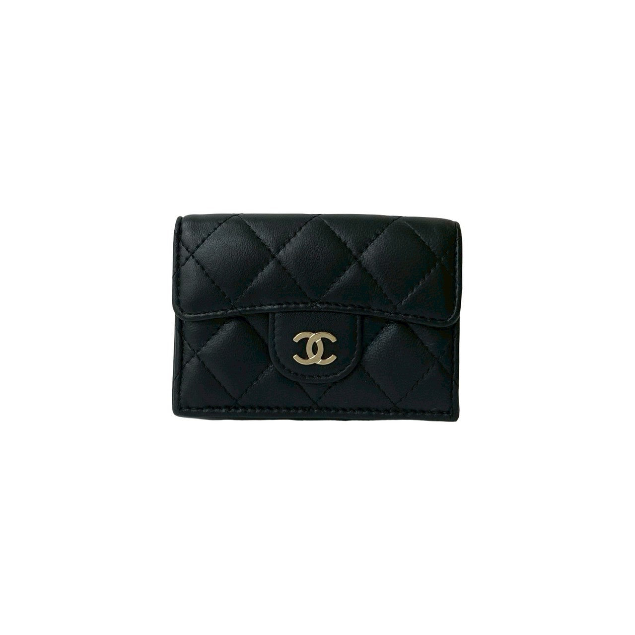 CHANEL Tri-fold wallet lambskin black Matrasse