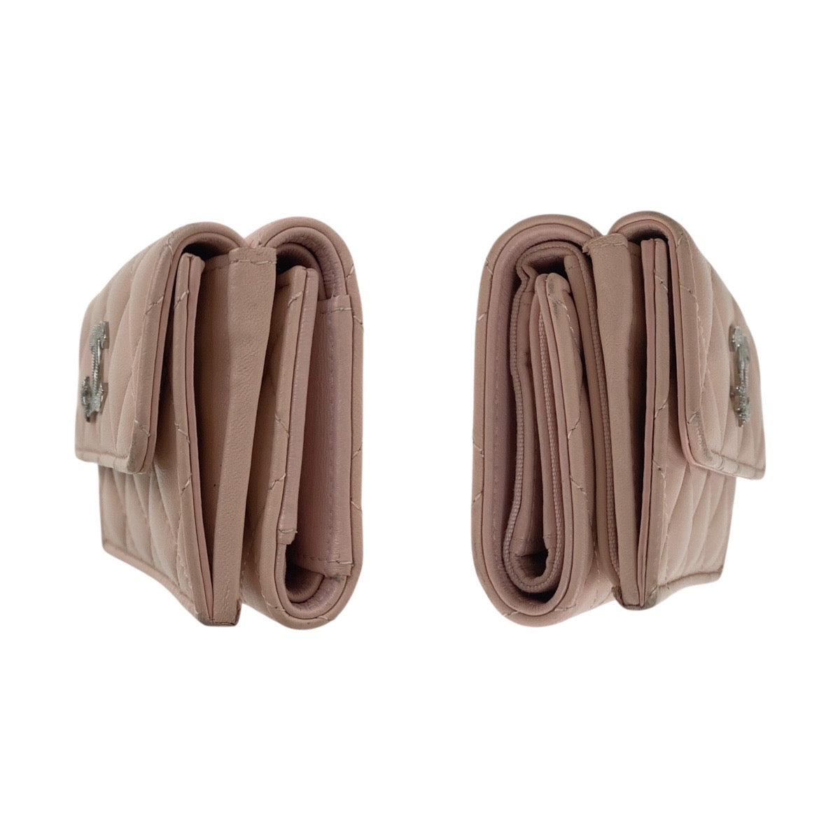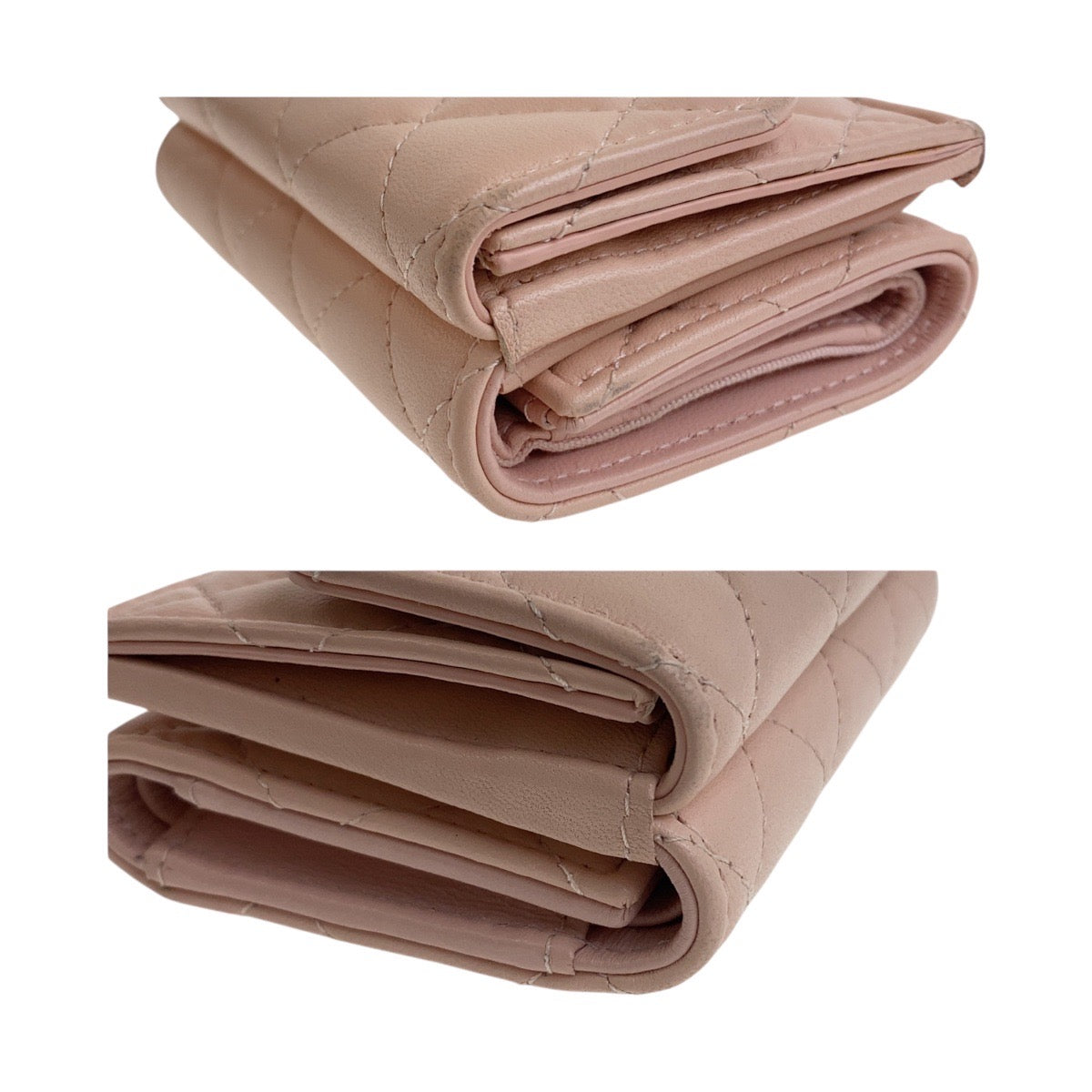 CHANEL Tri-fold wallet lambskin Pink Beige SilverMetal Matrasse COCO Mark