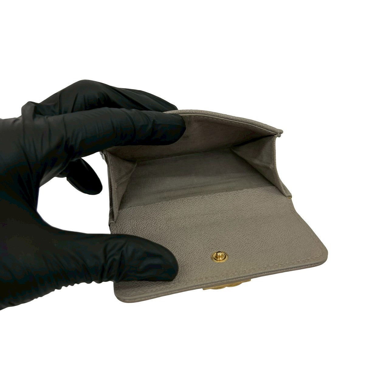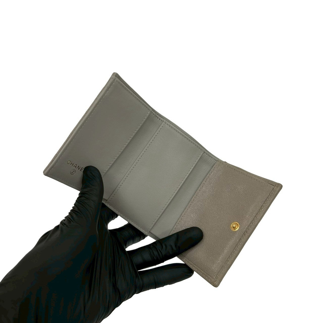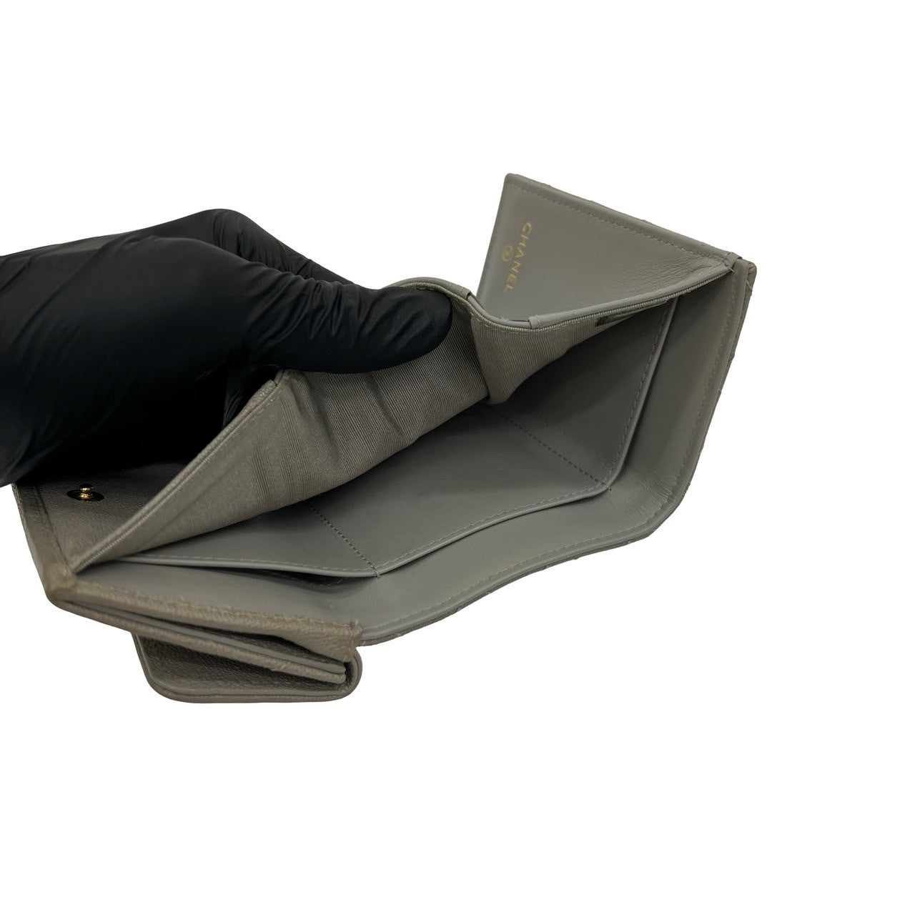 CHANEL Tri-fold wallet Matt caviar skin gray Matrasse Boy chanel