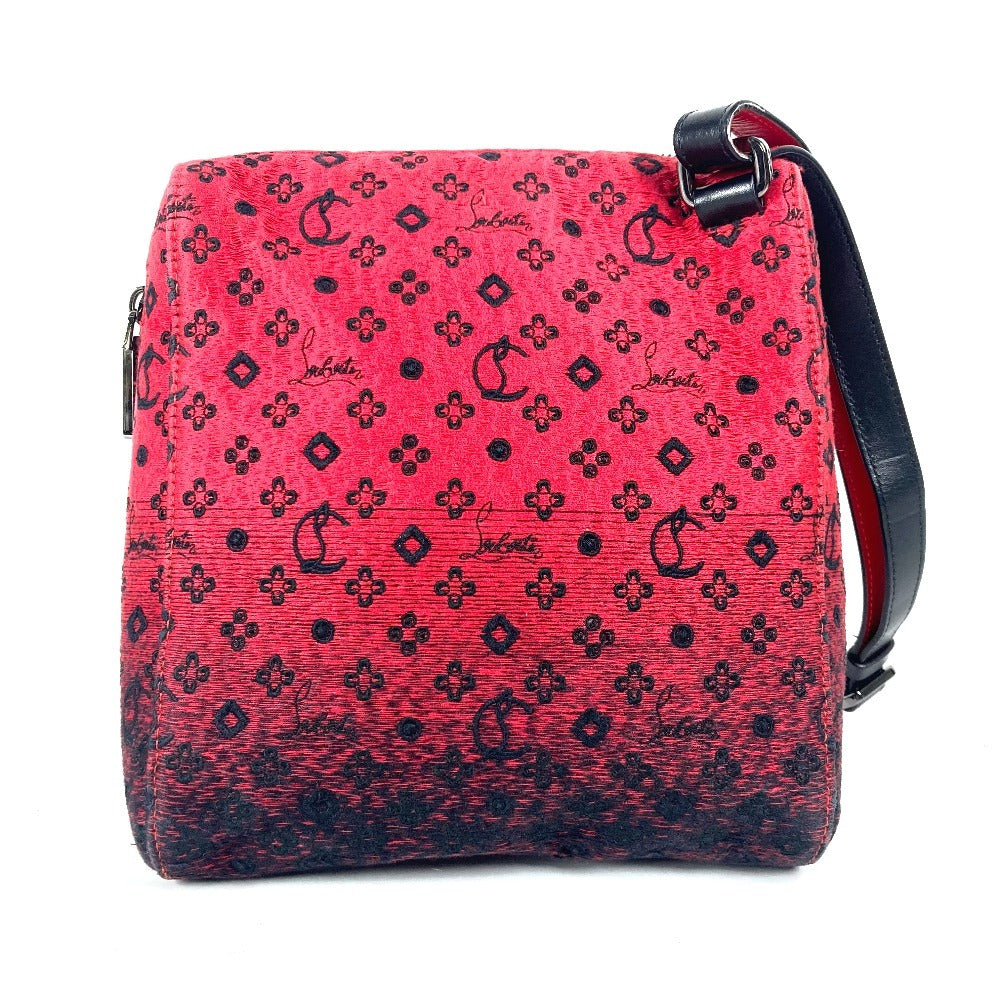 Christian Louboutin Shoulder Bag Leather / canvas black Logo embroidery