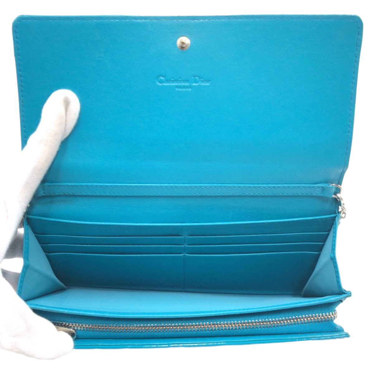 Dior Long Wallet Purse enamel Blue Silver Metal Canage Logo charm
