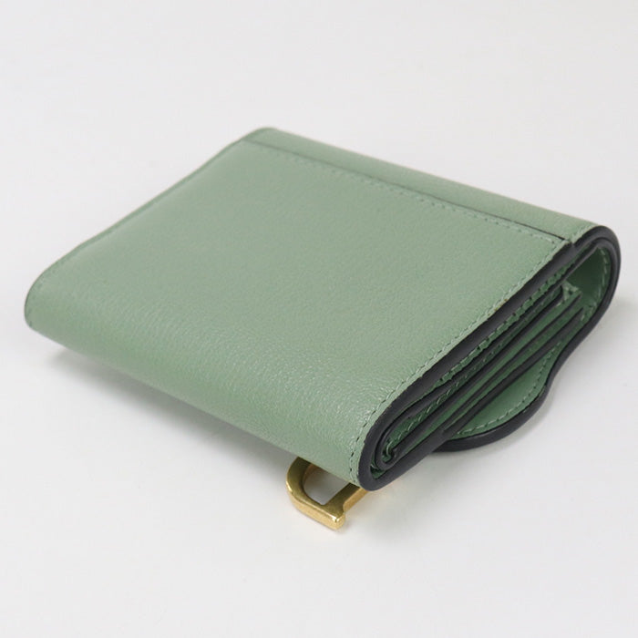 Dior S5652 CCEH Lotus Wallet saddle Three fold wallet leather green Women |