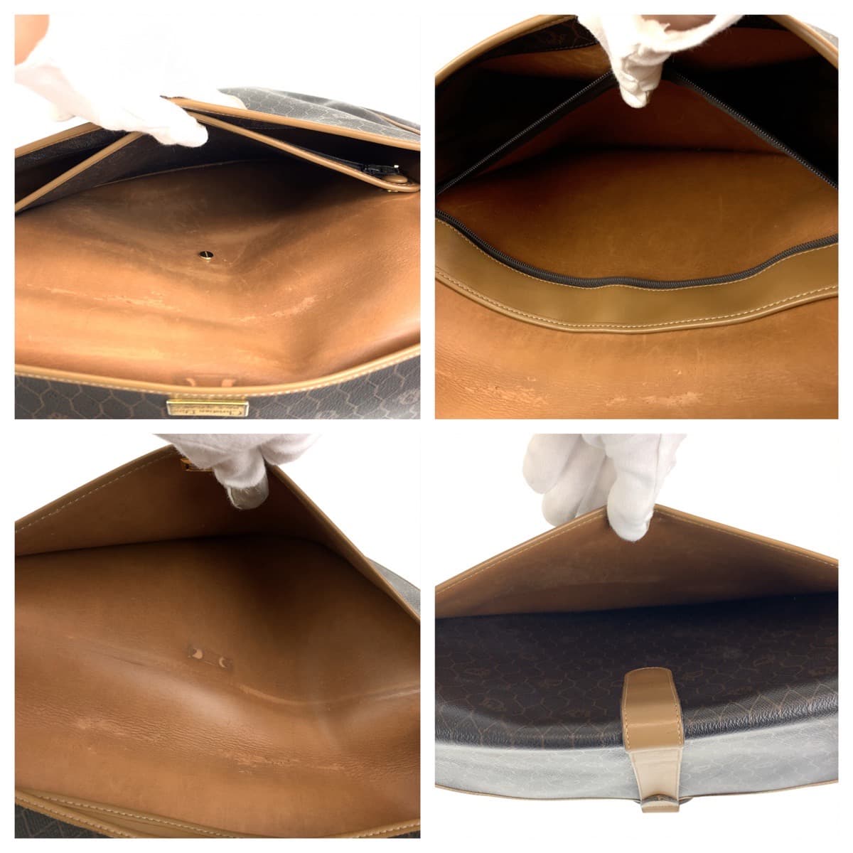 Dior Shoulder Bag leather Brown Gold Metal Crossbody Shoulder Bag Pochette Honeycomb Pattern Women Used Authentic