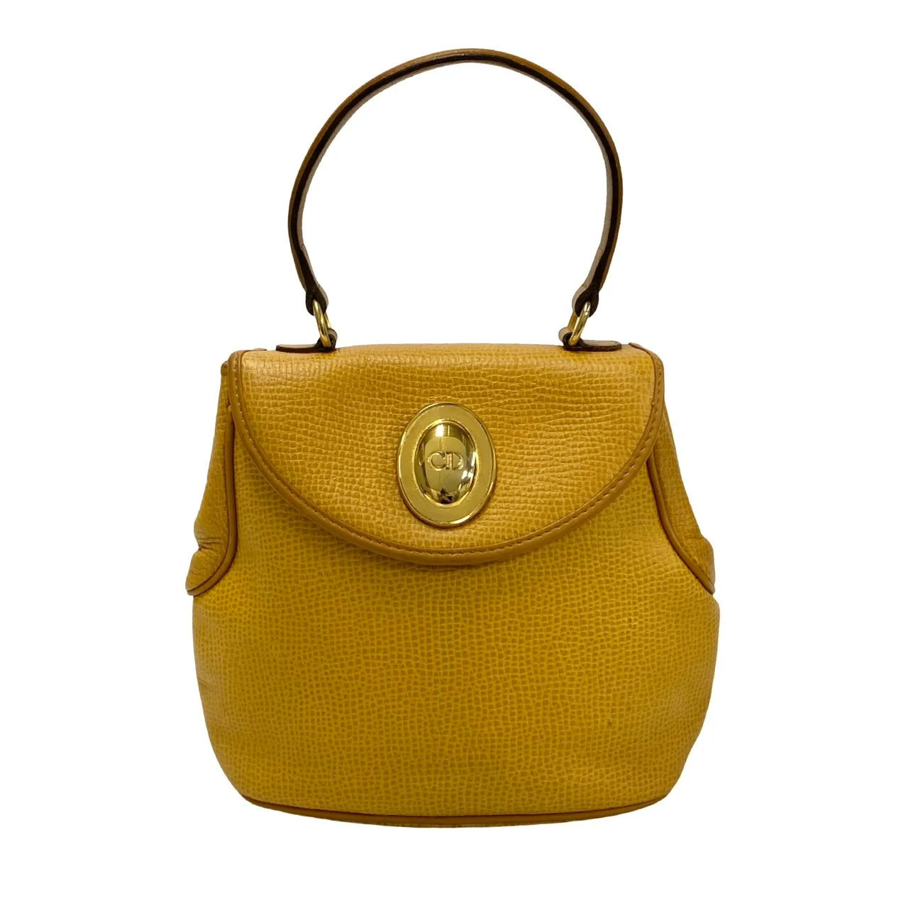 DIOR Top Handle Handbag Yellow Leather CD Metal Logo