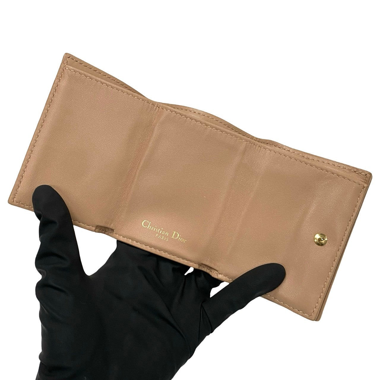 Dior Tri-fold wallet leather pink CD logo Metal Lotus wallet Women Used Authentic