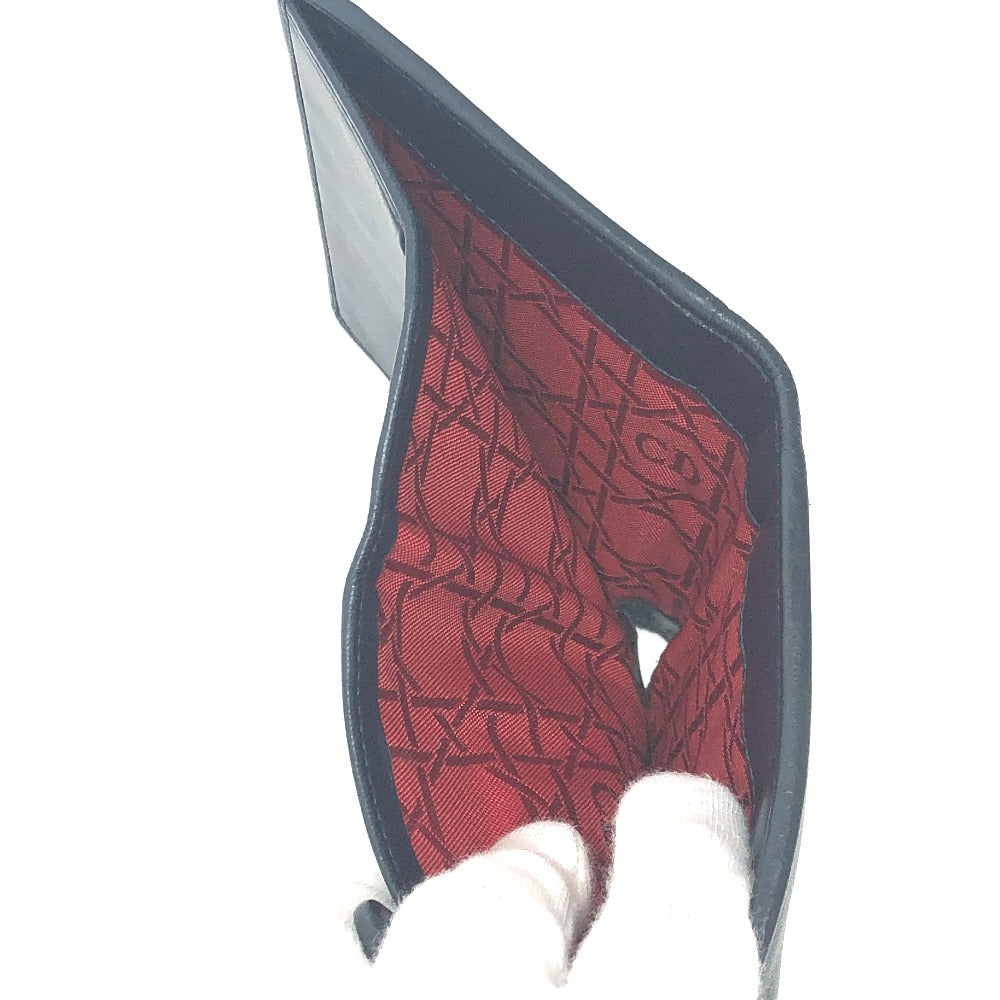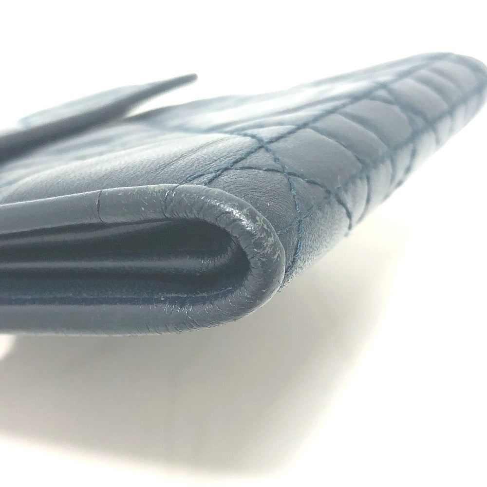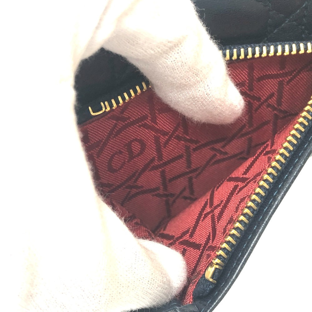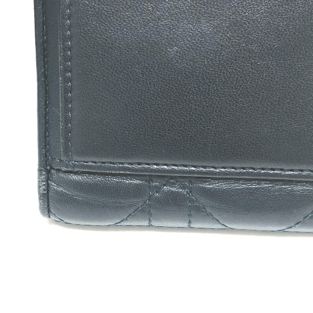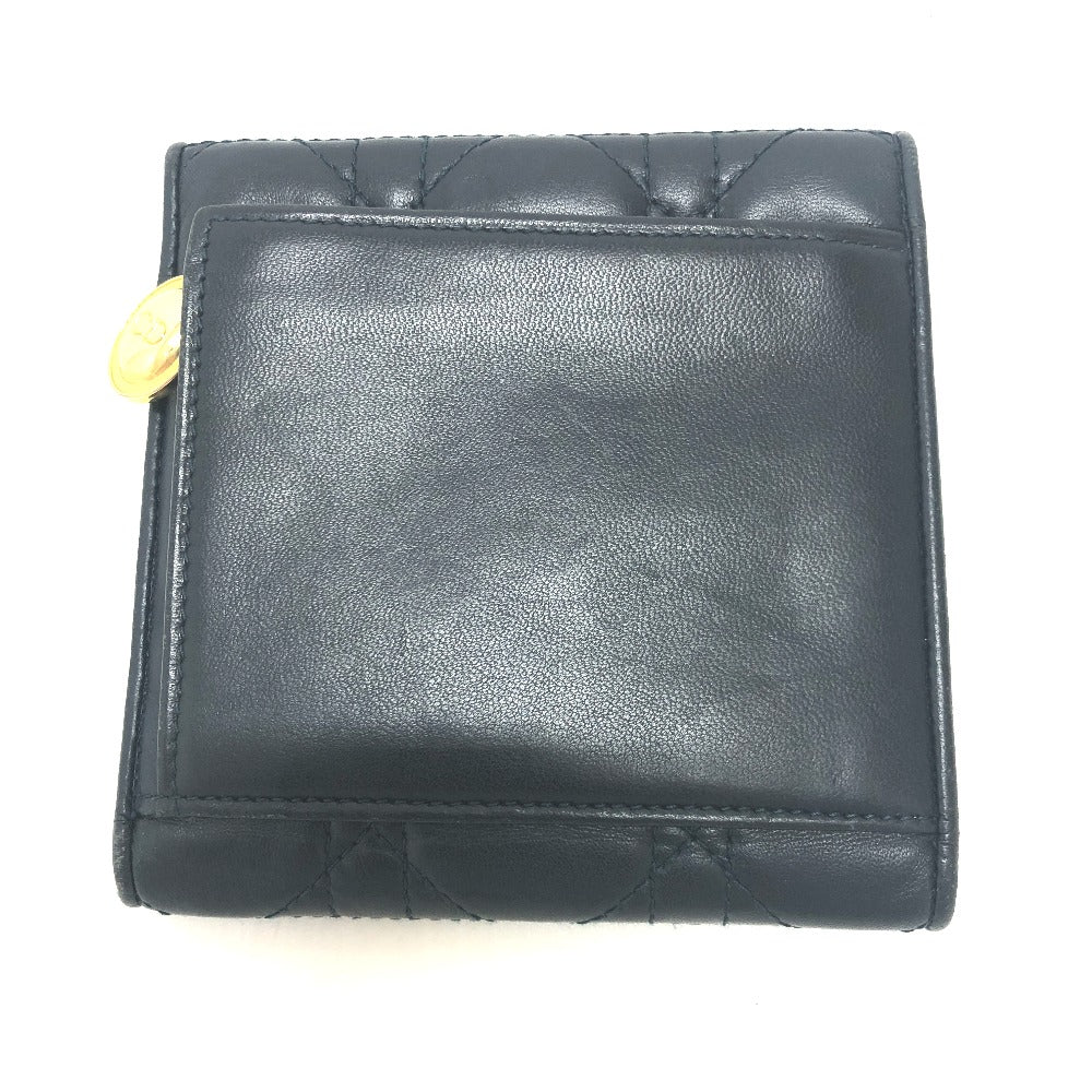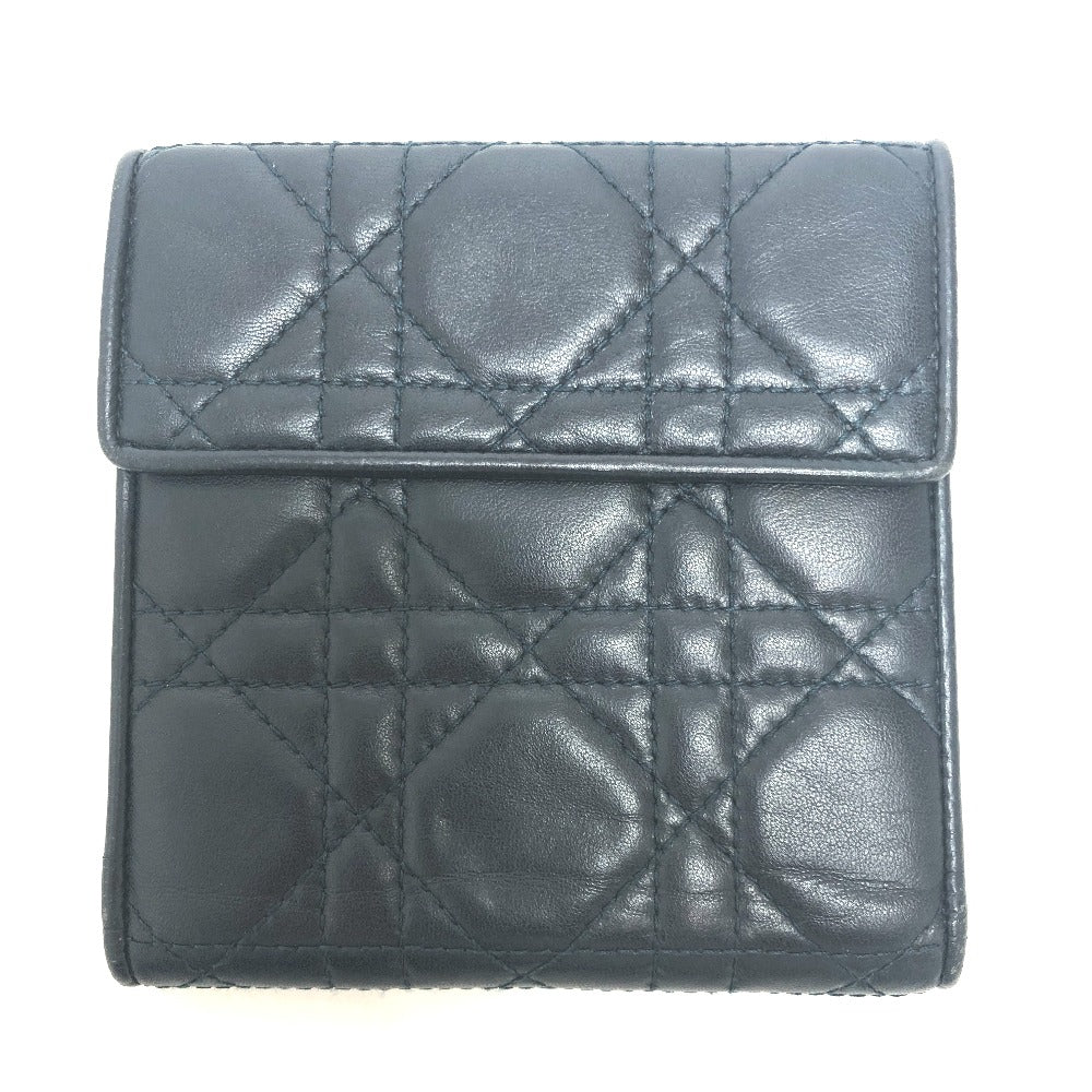 Dior Trifold wallet lambskin Navy Canage Women Used Authentic