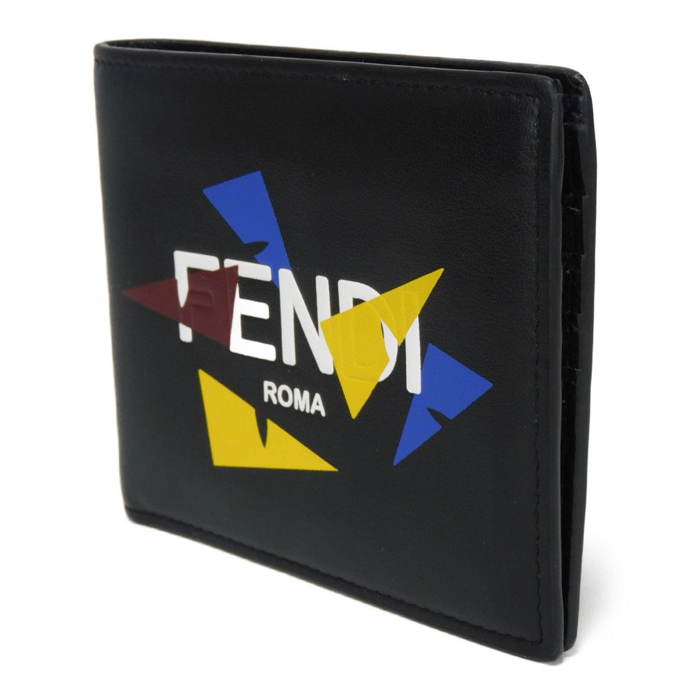 FENDI Bifold Wallet 7M0169 AC9I F0X93 leather black Eye Motif Multicolor logo Bag Bugs Bifold Wallet mens Used Authentic