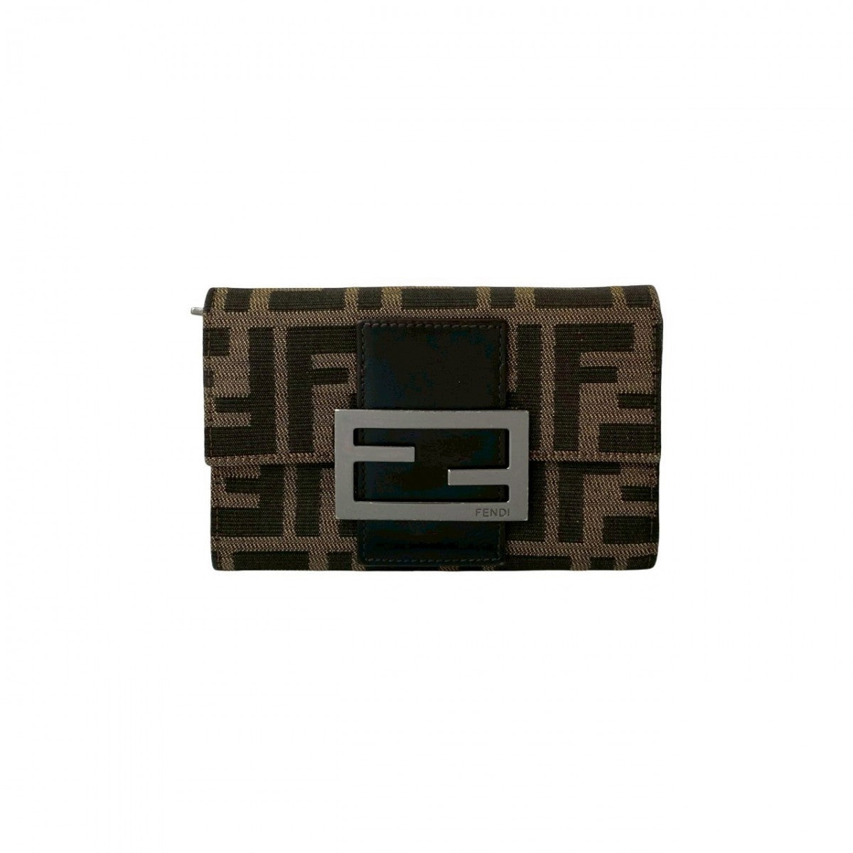 FENDI Bifold Wallet Canvas, Leather Brown Zucca FF logo Pattern Women Used Authentic