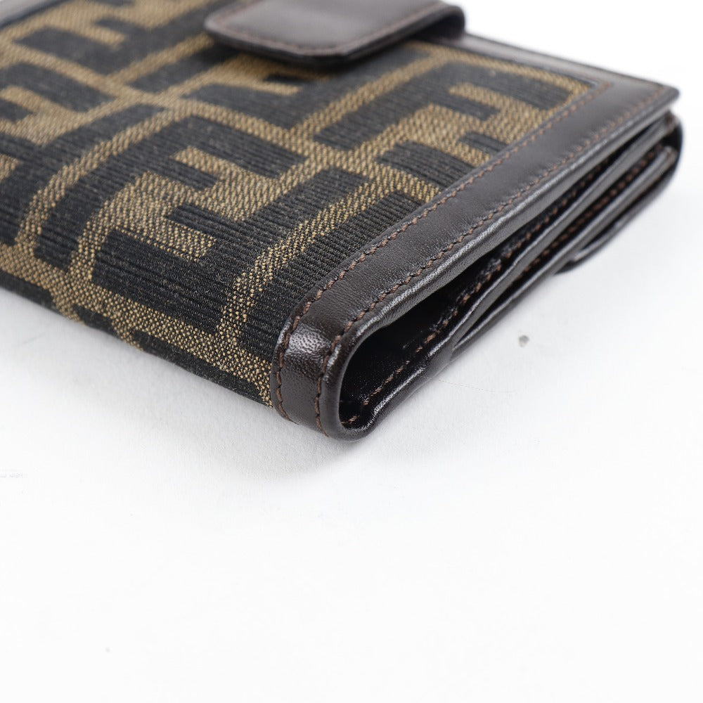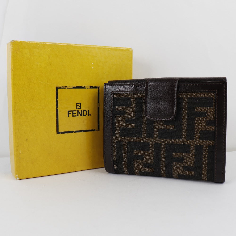 FENDI Bifold Wallet Canvas, Calfskin Brown Zucca Women Used Authentic