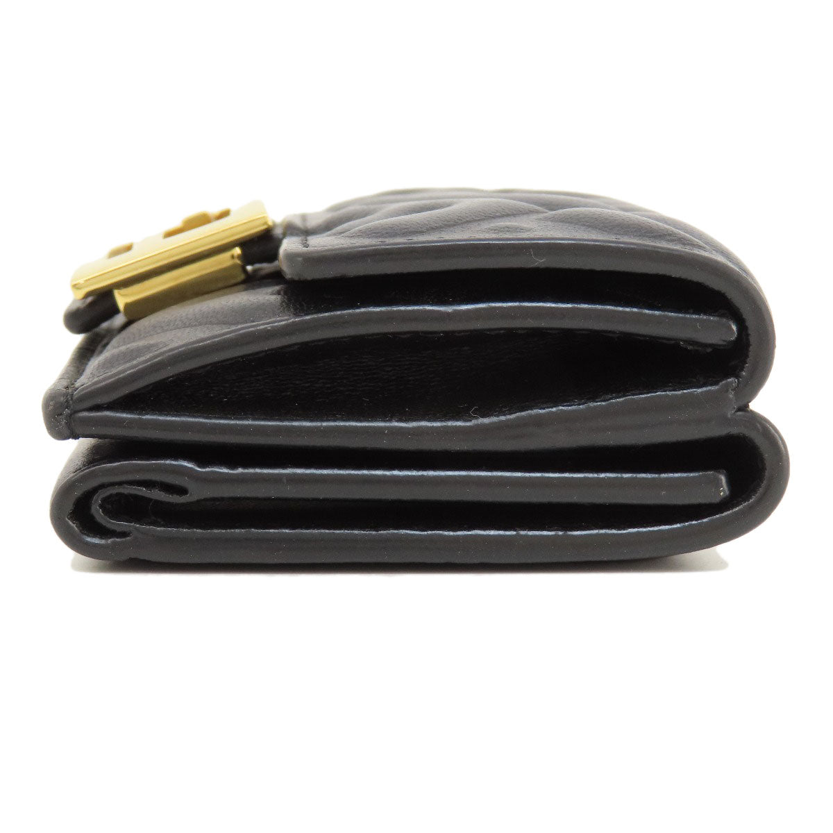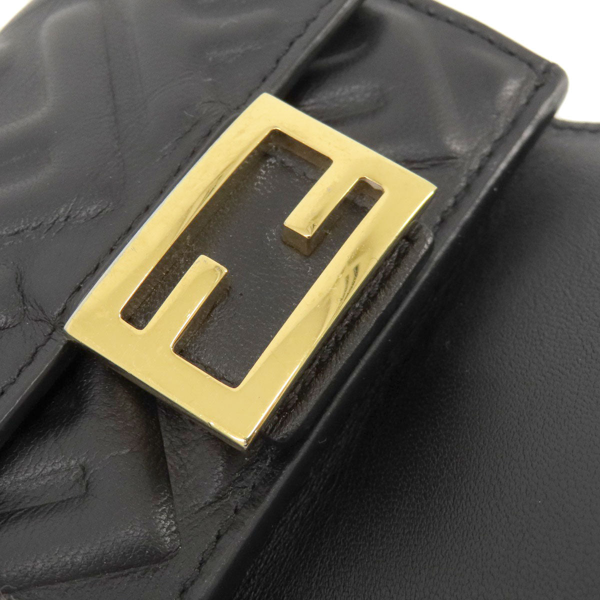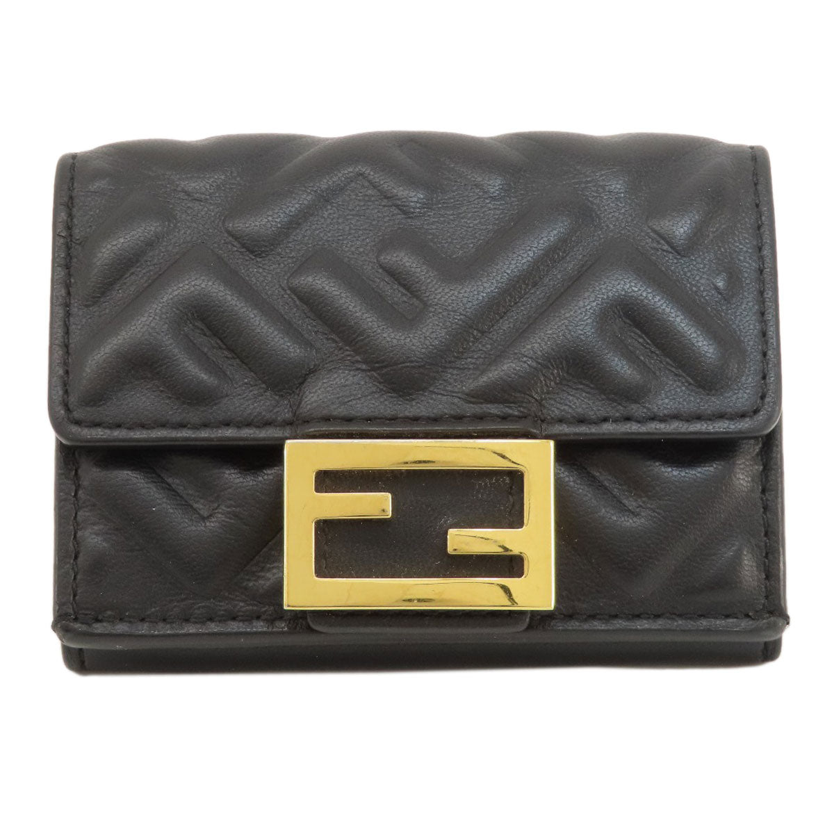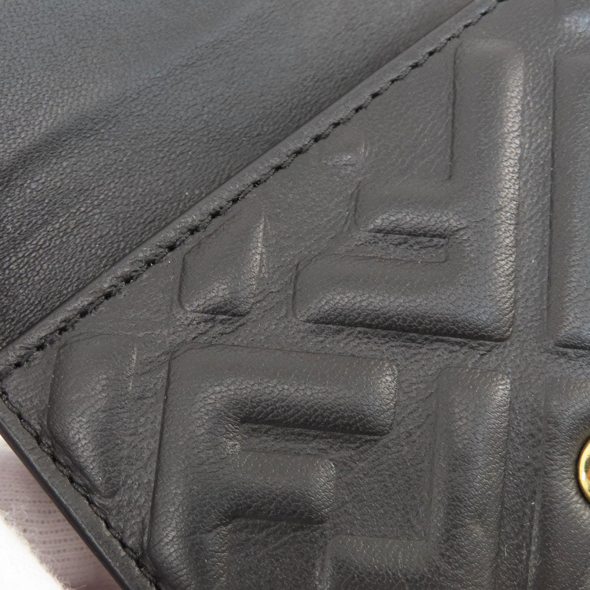 FENDI Bifold Wallet leather black Embossed logo Women Used Authentic