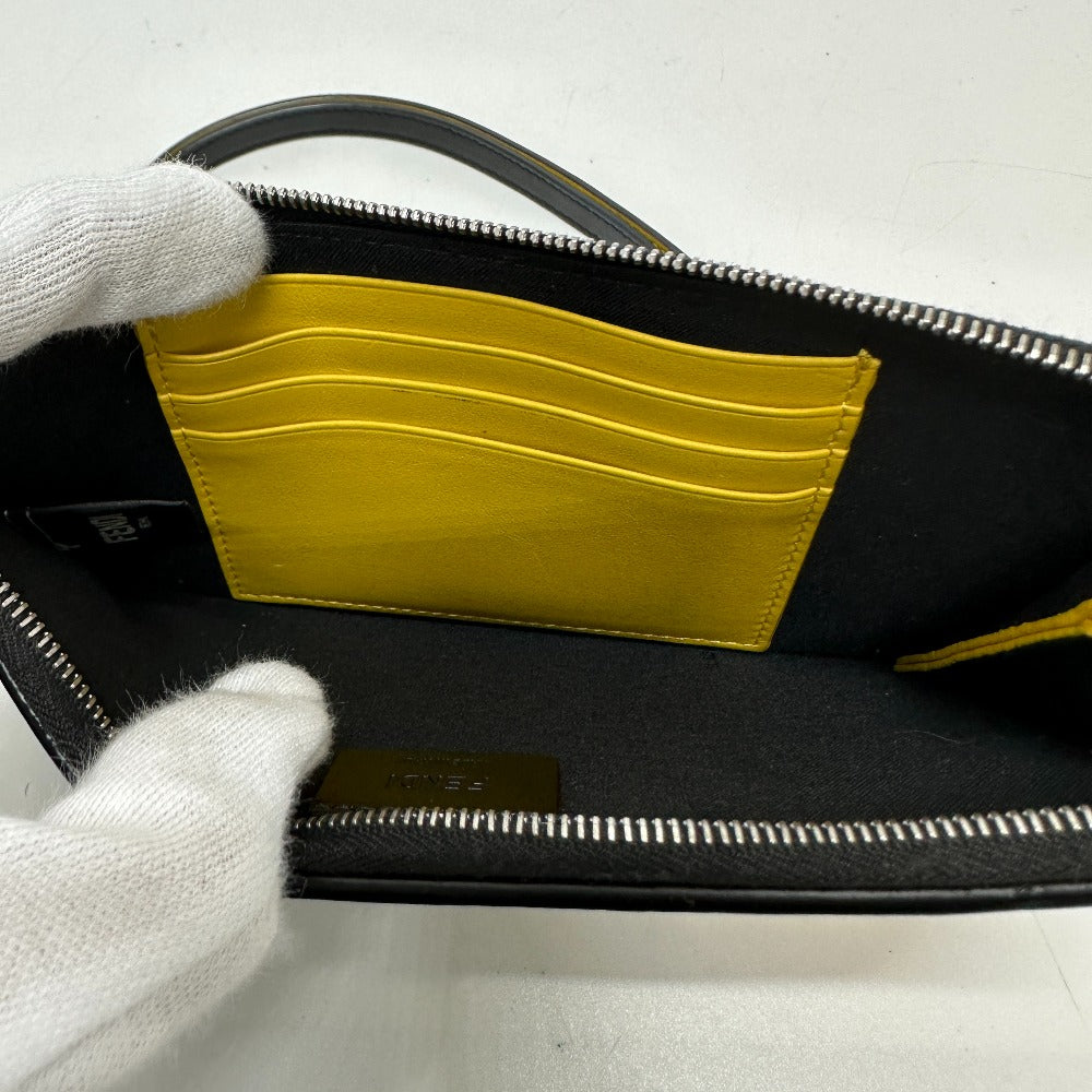 FENDI Coin case 7M0283 leather black Wallet Coin Pocket Card Case Monster Bugs mens Used Authentic