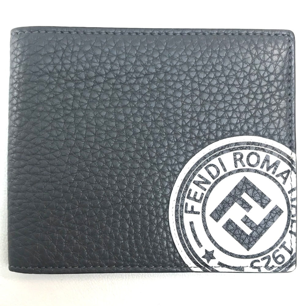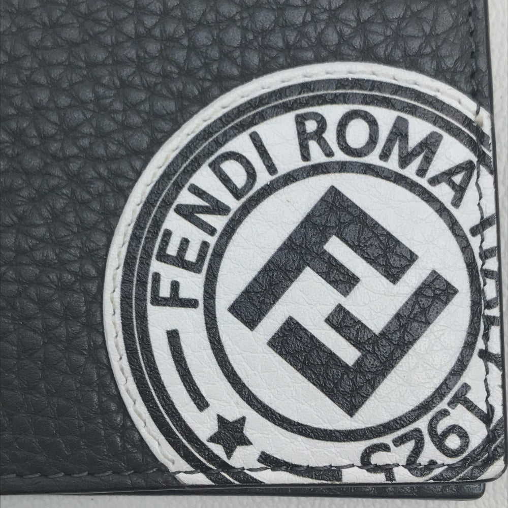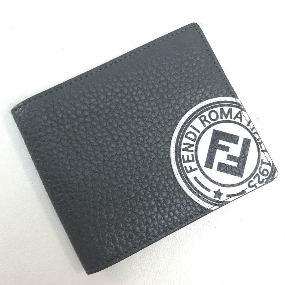 FENDI Folded wallet 7M0169 A4NR Calf leather dark gray x white FF logo stamp mens Used Authentic