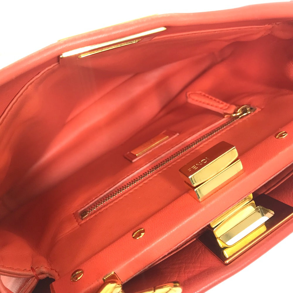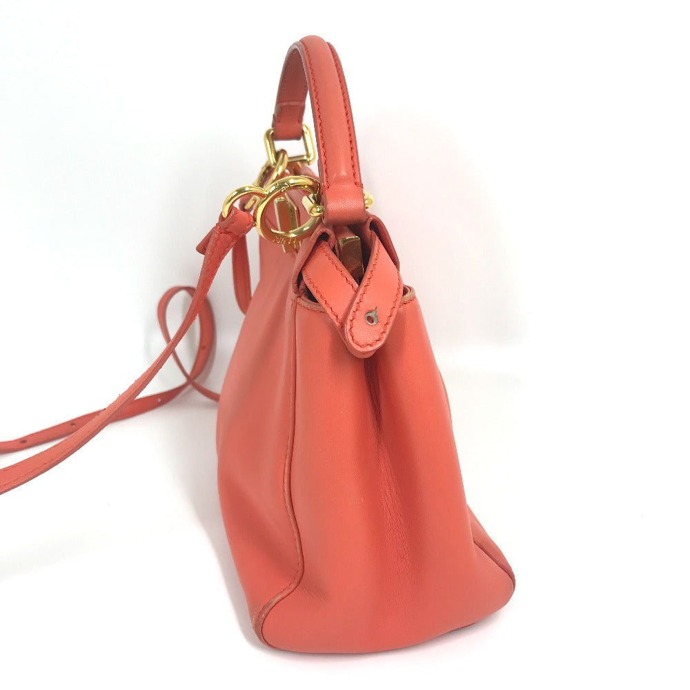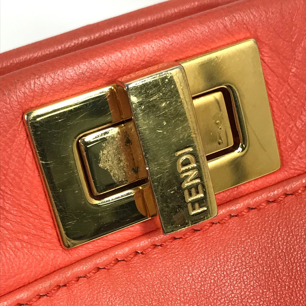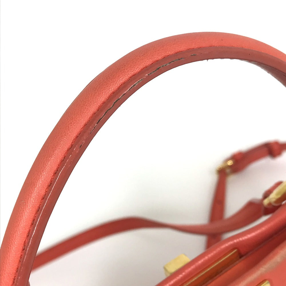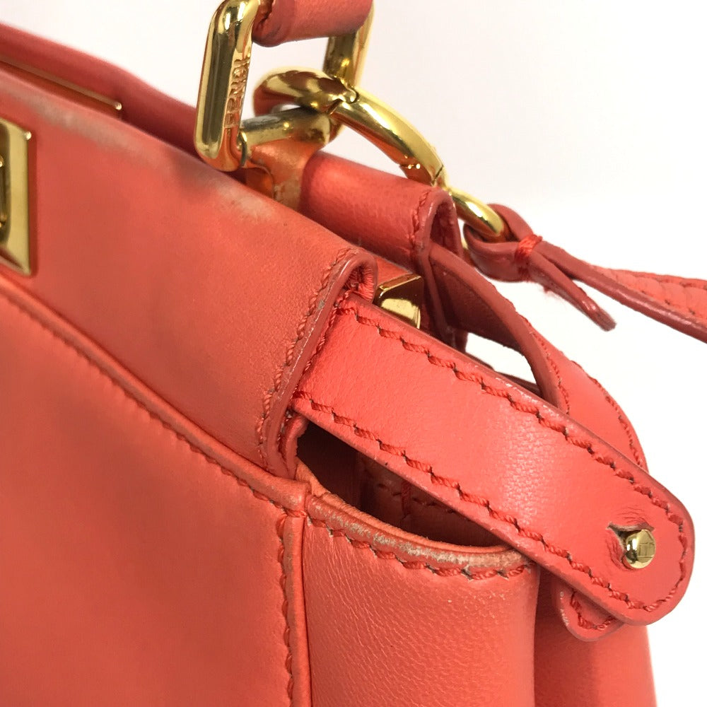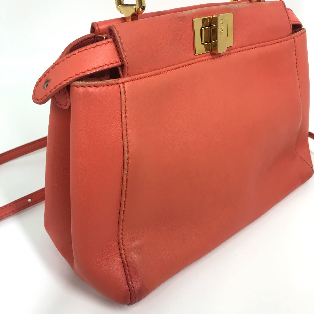 FENDI Handbag 8BN244 leather Salmon pink type Shoulder Crossbody Mini Pea Kaboo Women Used Authentic