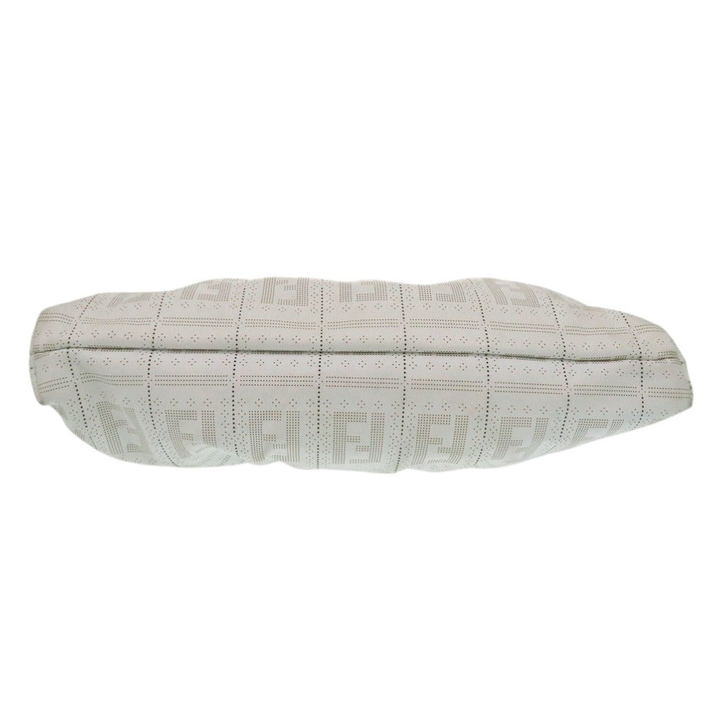 FENDI Handbag 8BR445 leather white one belt Zucca Women Used Authentic
