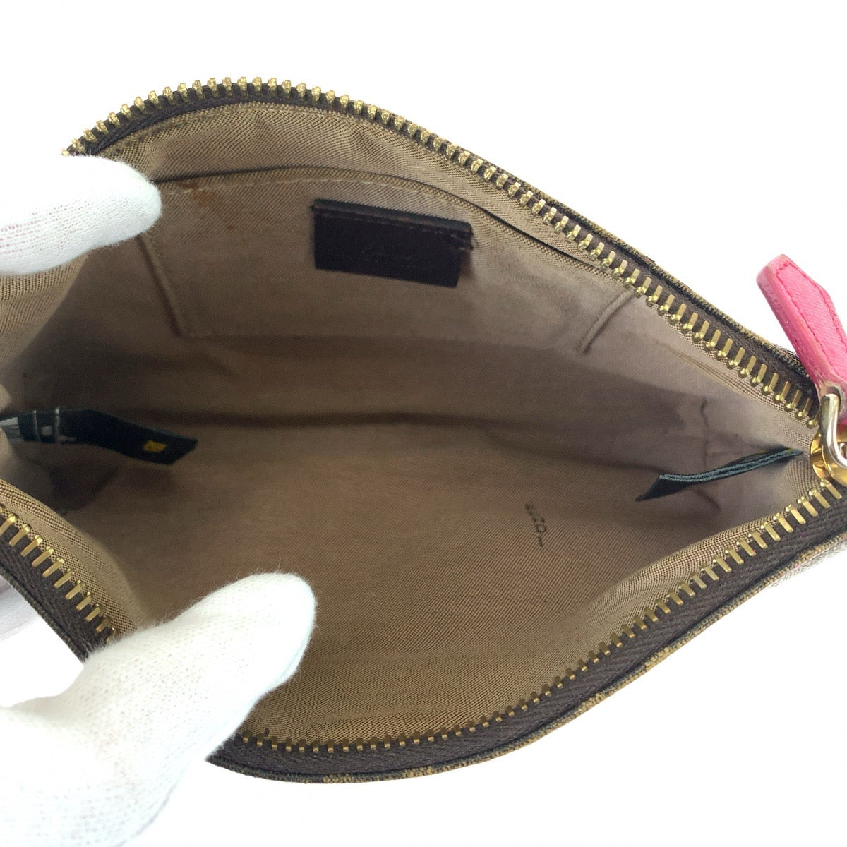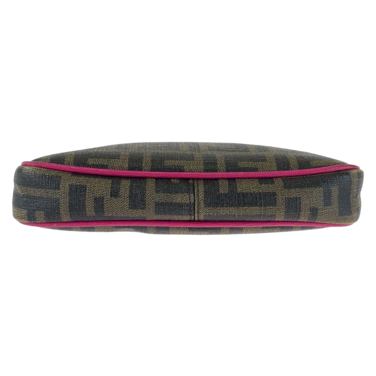 FENDI Handbag 8M0271 GRP leather Brown Pink Gold Metal Chain Handbag Accessory Pouch Zucca Pattern Women Used Authentic