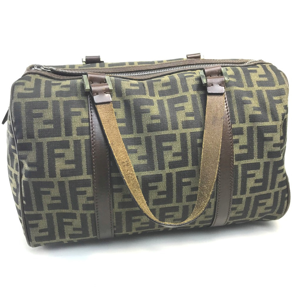 FENDI Handbag Canvas / leather Brown Zucca FF pattern Women Used Authentic