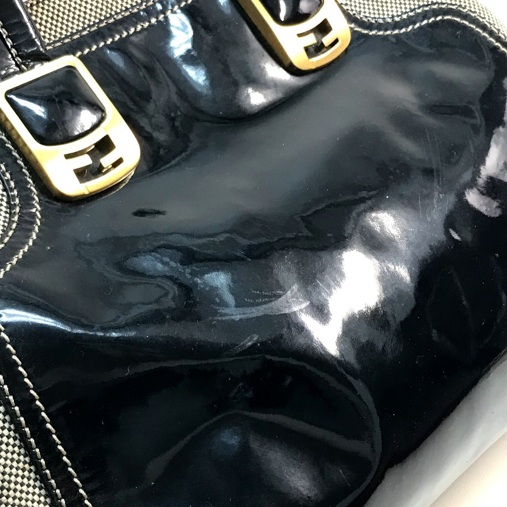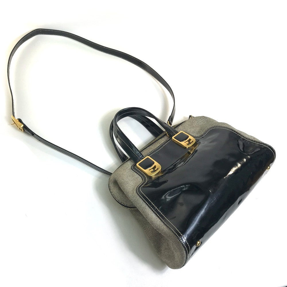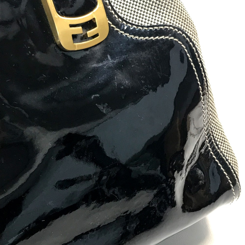 FENDI Handbag Canvas / patent leather Black type Enamel Crossbody Shoulder chameleon Women Used Authentic