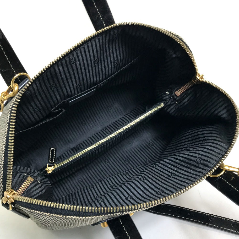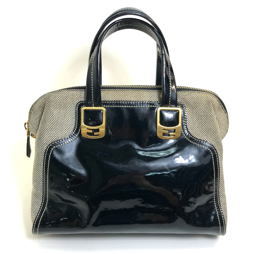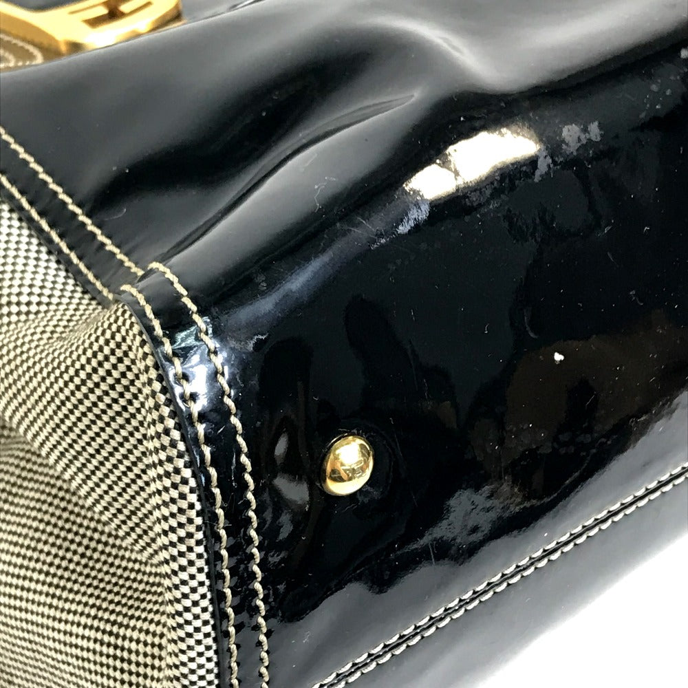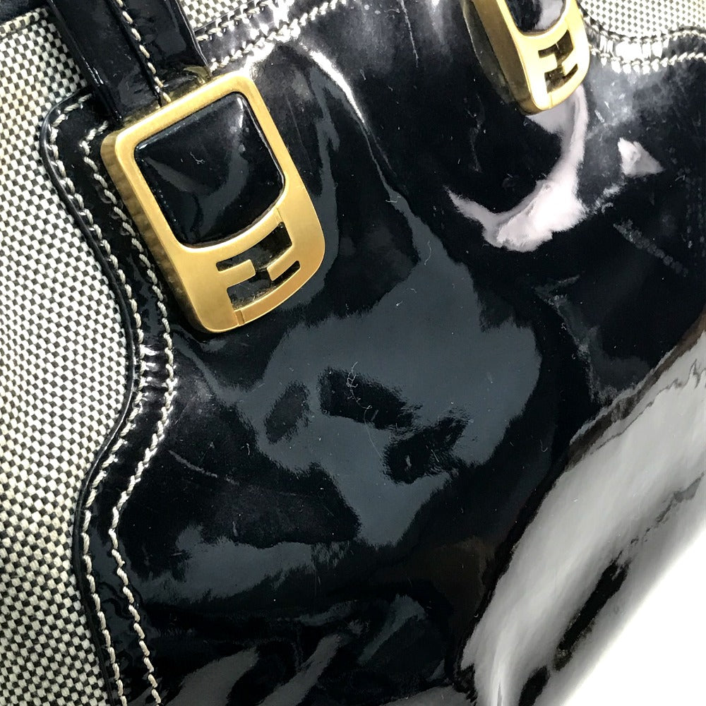 FENDI Handbag Canvas / patent leather Black type Enamel Crossbody Shoulder chameleon Women Used Authentic