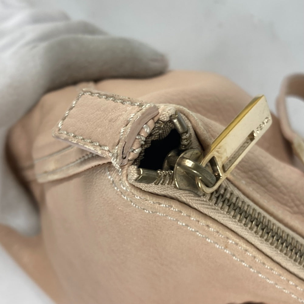 FENDI Handbag leather beige FF logo Women Used Authentic