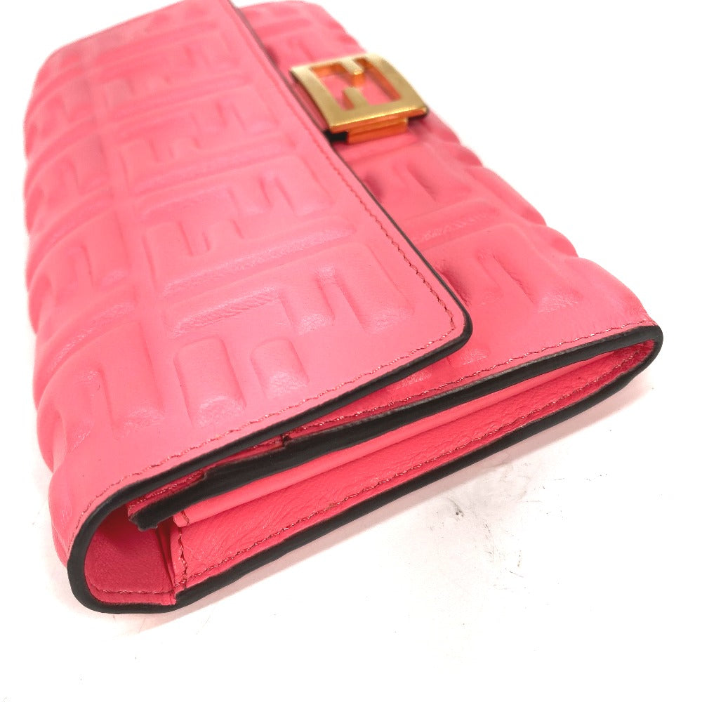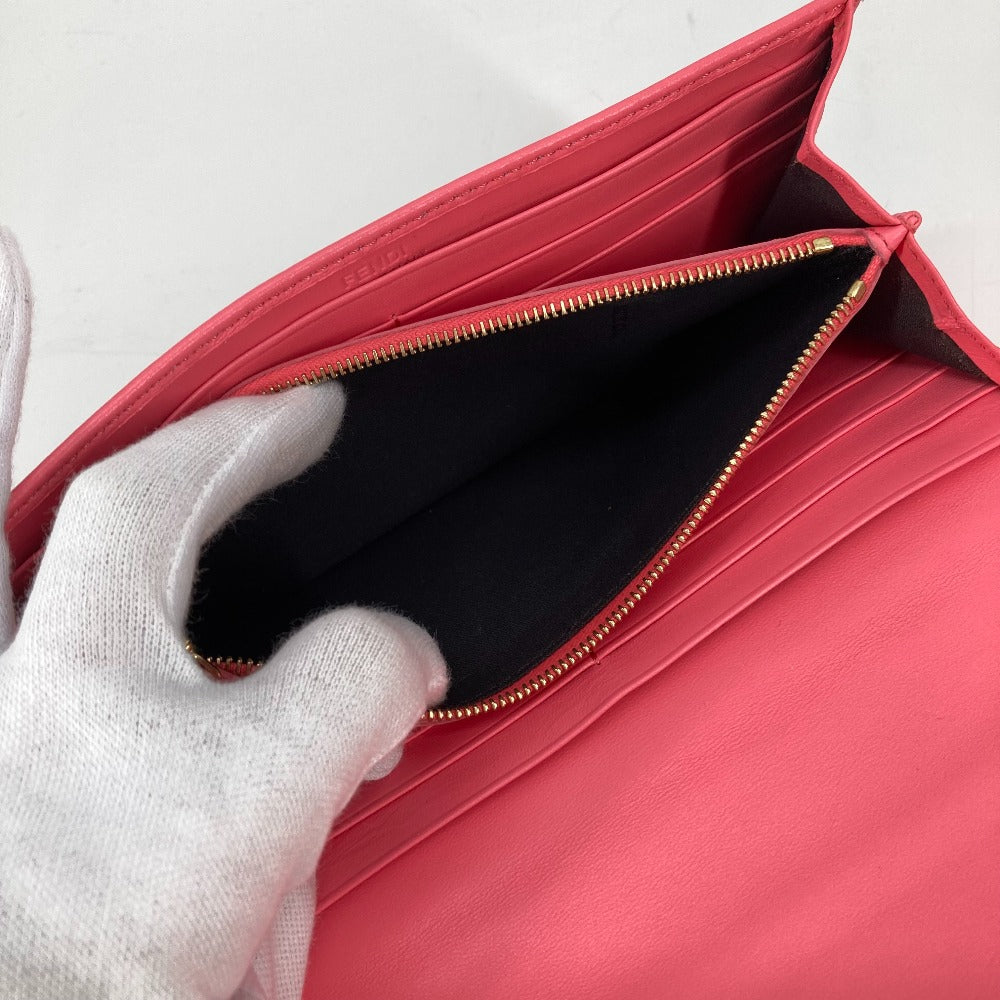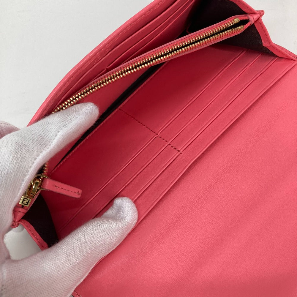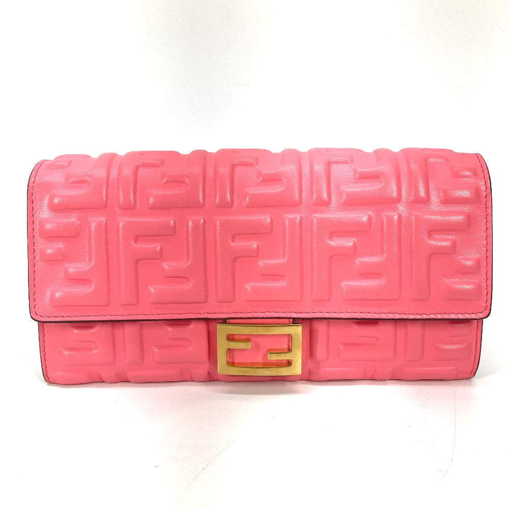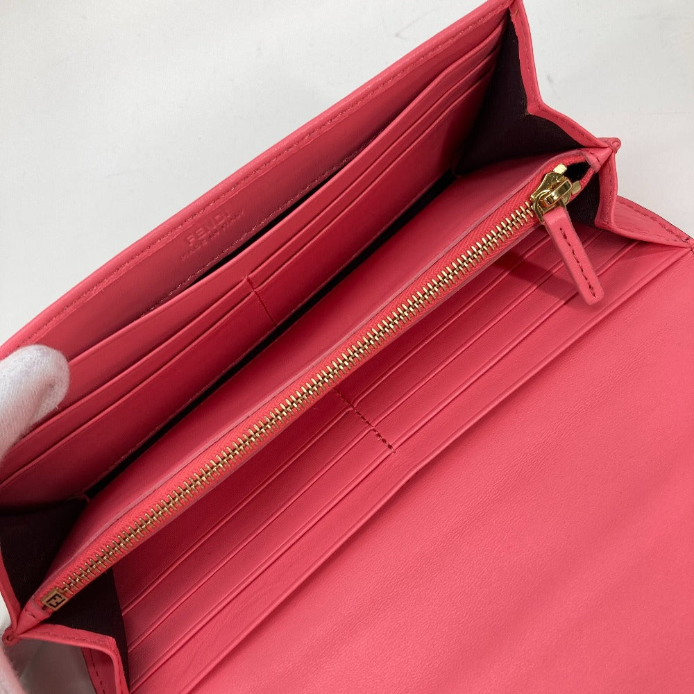 FENDI Long Wallet Purse 8M0251 leather pink Zucca Baguette Continental Women Used Authentic