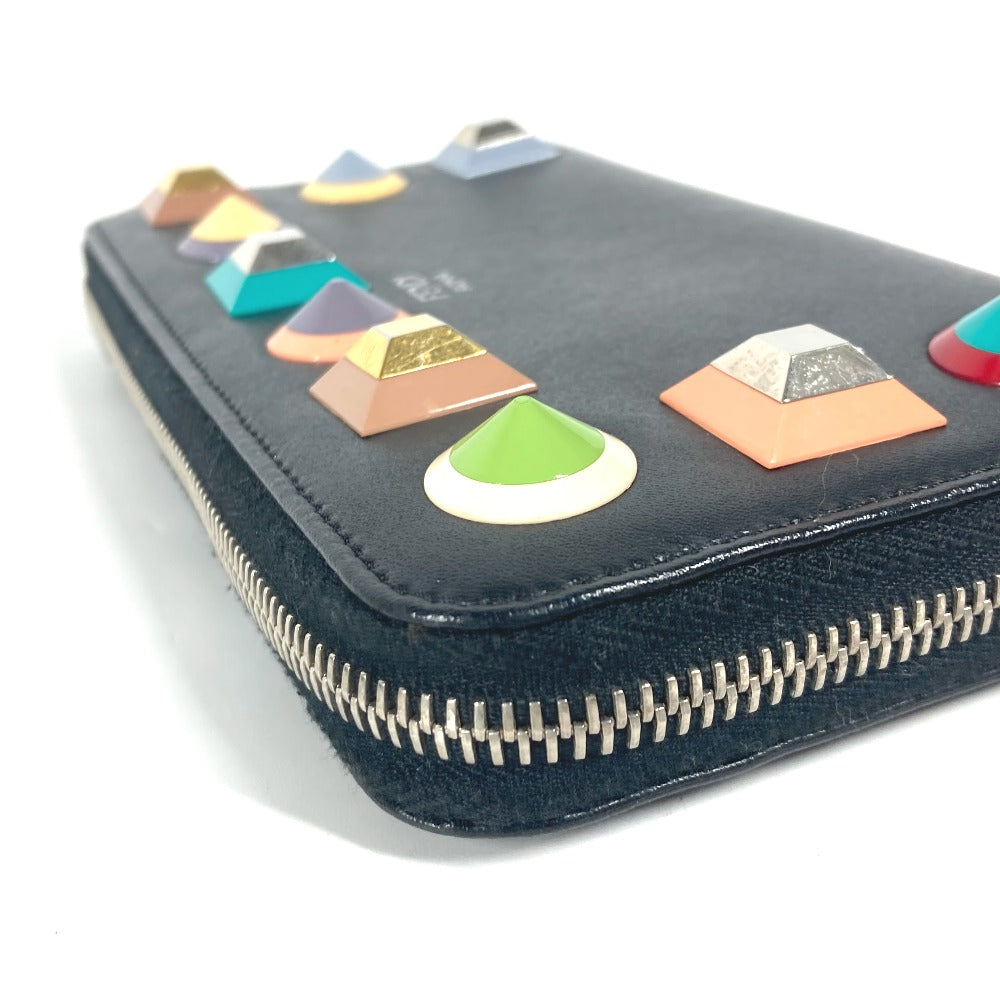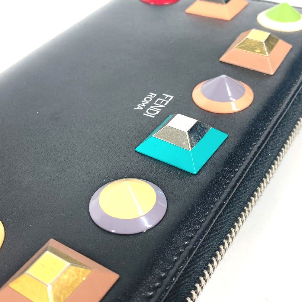 FENDI Long Wallet Purse 8M0299 leather black Long wallet Studs unisex(Unisex) Used Authentic
