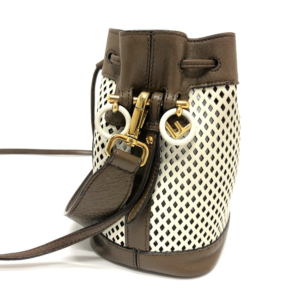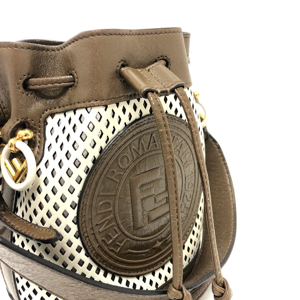 FENDI Shoulder Bag 8BS010 leather Brown FF Logo Mini Mon Tresor Women Used Authentic